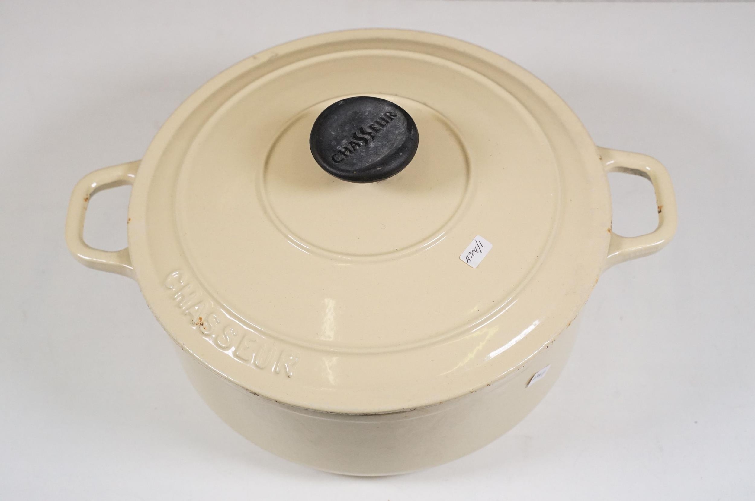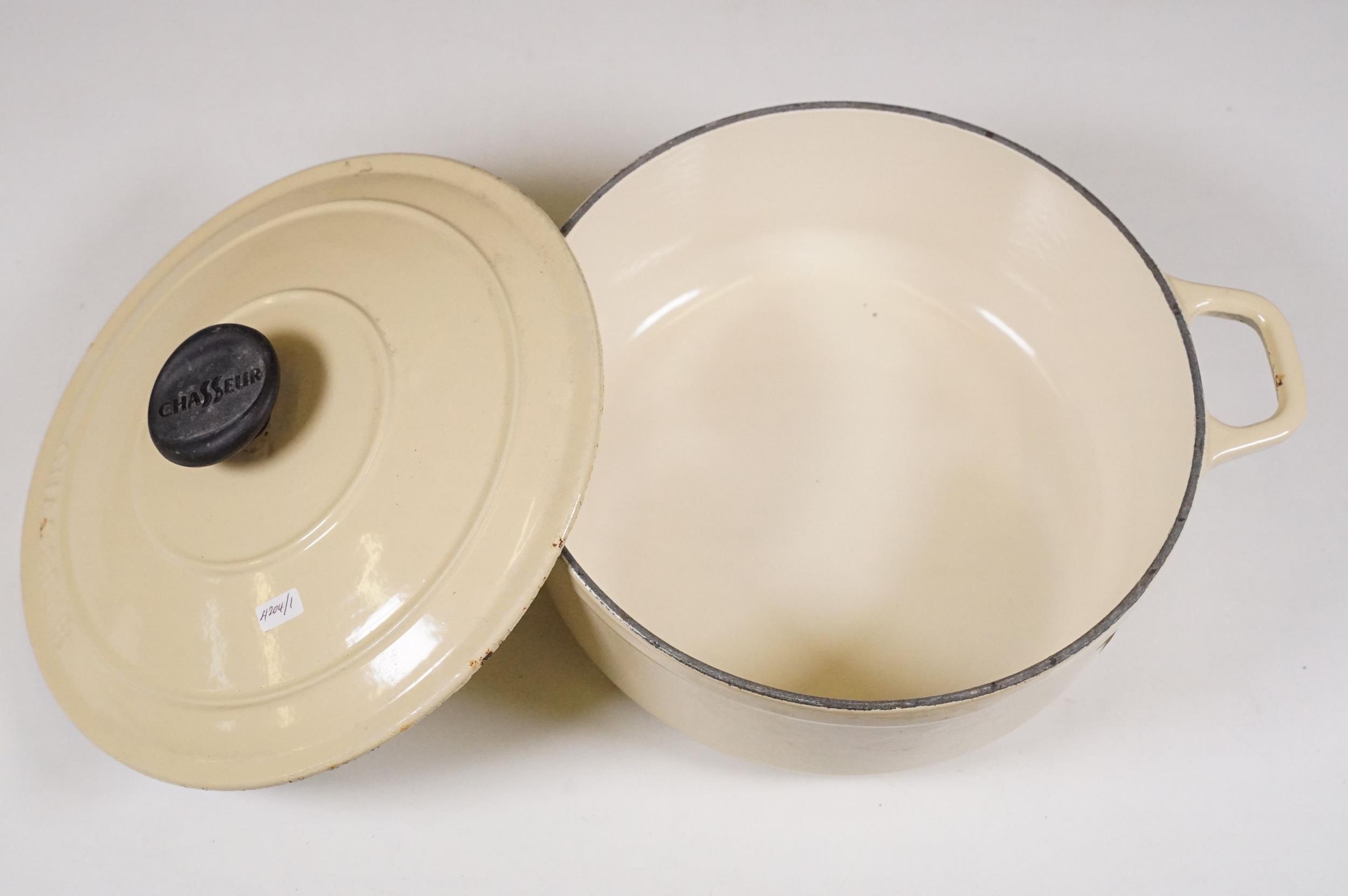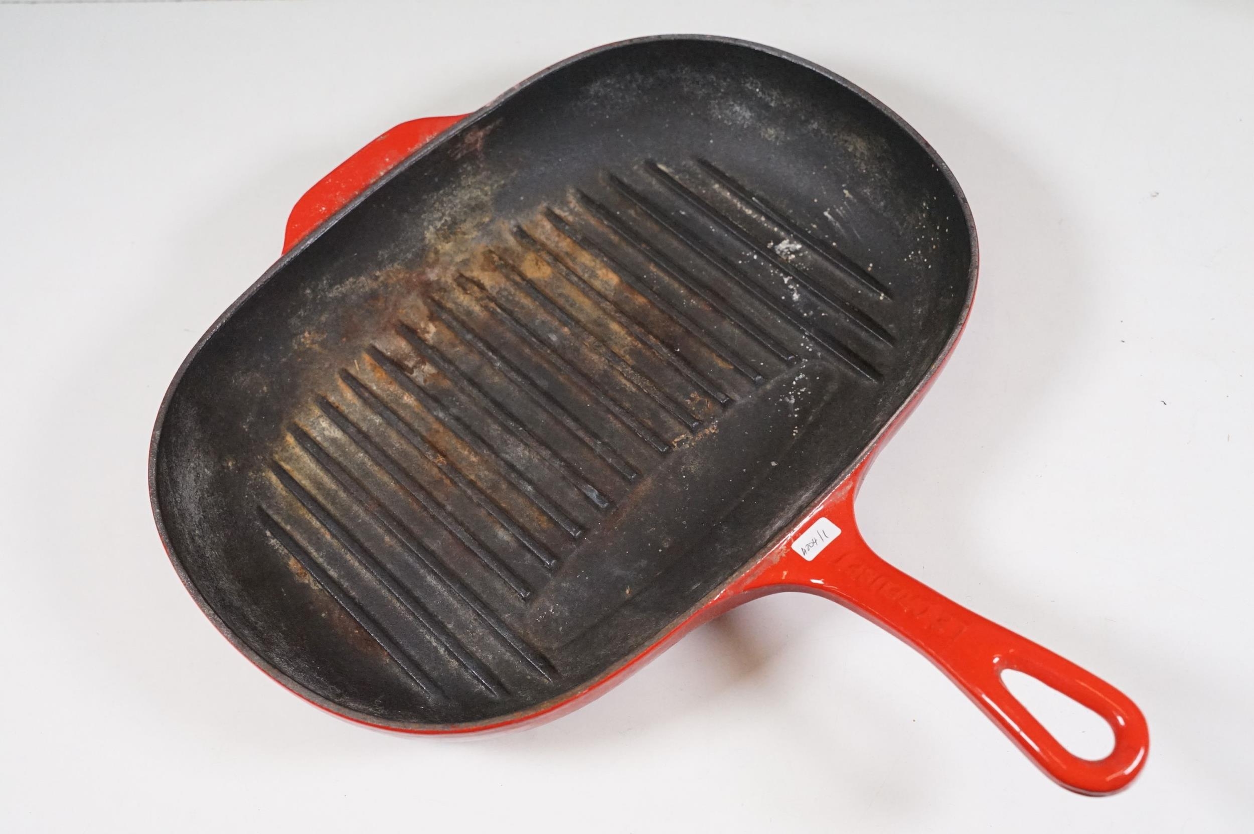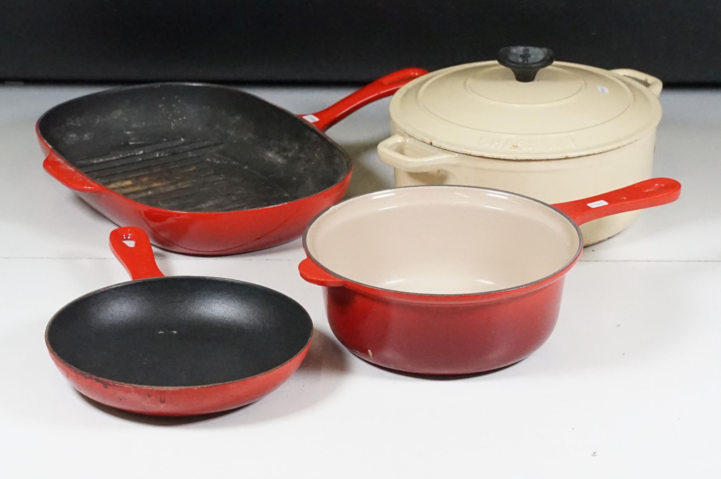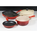 Le Crueset saucepan, frying pan and steak griddle with a chasseur lidded casserole cast iron dish
