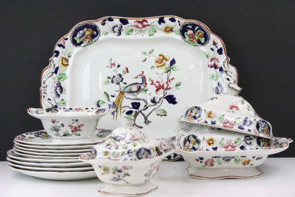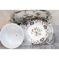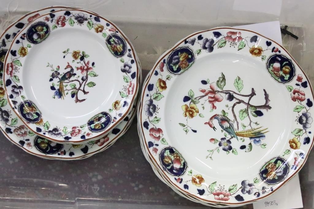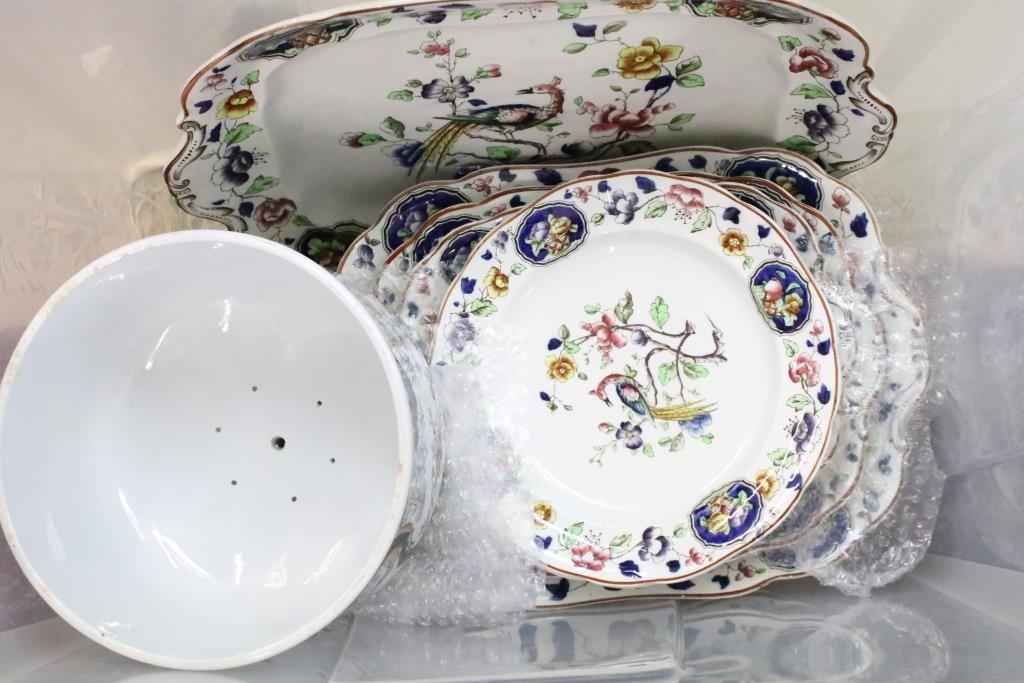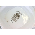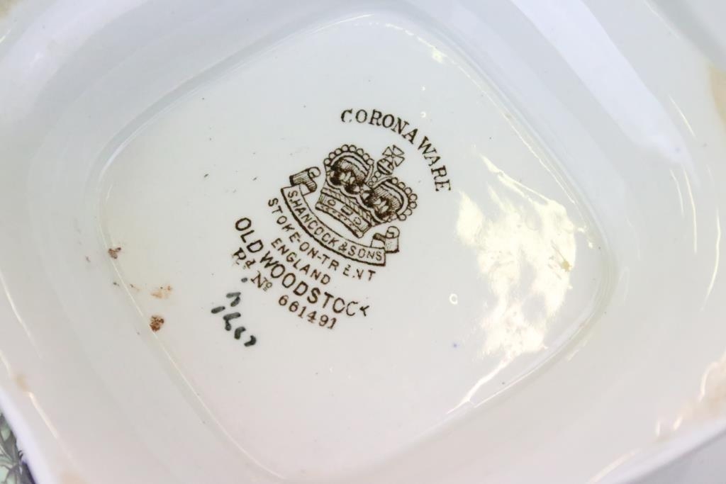 Two boxes of ceramics, predominantly Old Woodstock Coronation dinner ware to include meat platters, tureens, dinner plates, and an unassociated cheese dome cover