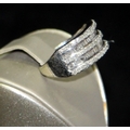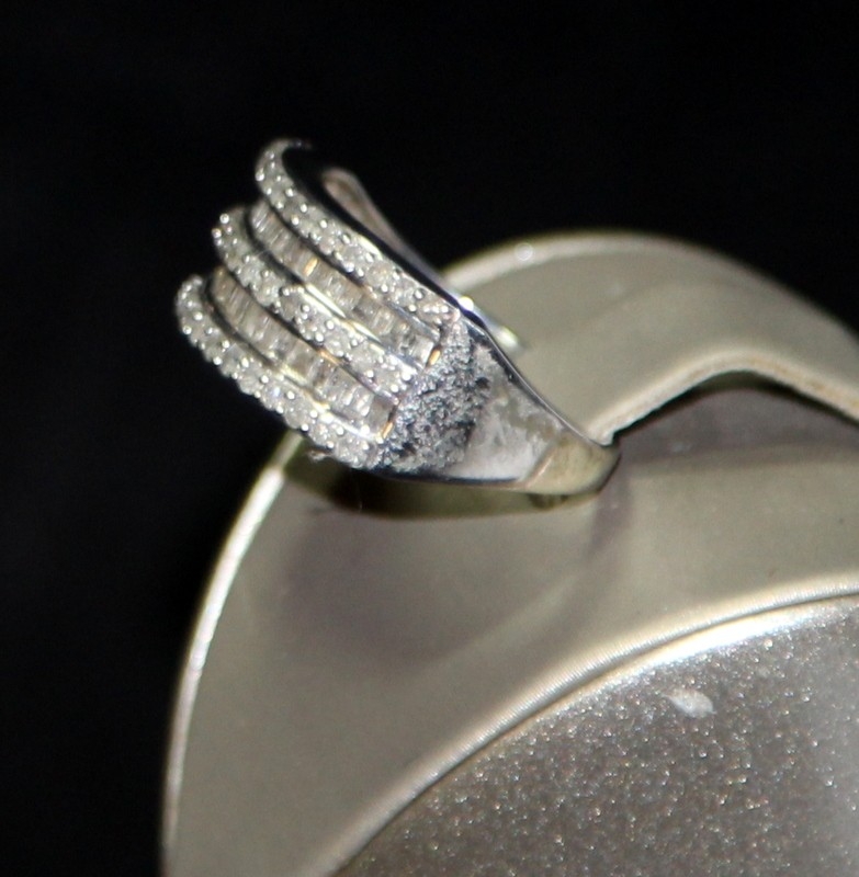 9ct white gold ring featuring round cut and baguette diamonds size P 1/2. 4.2g