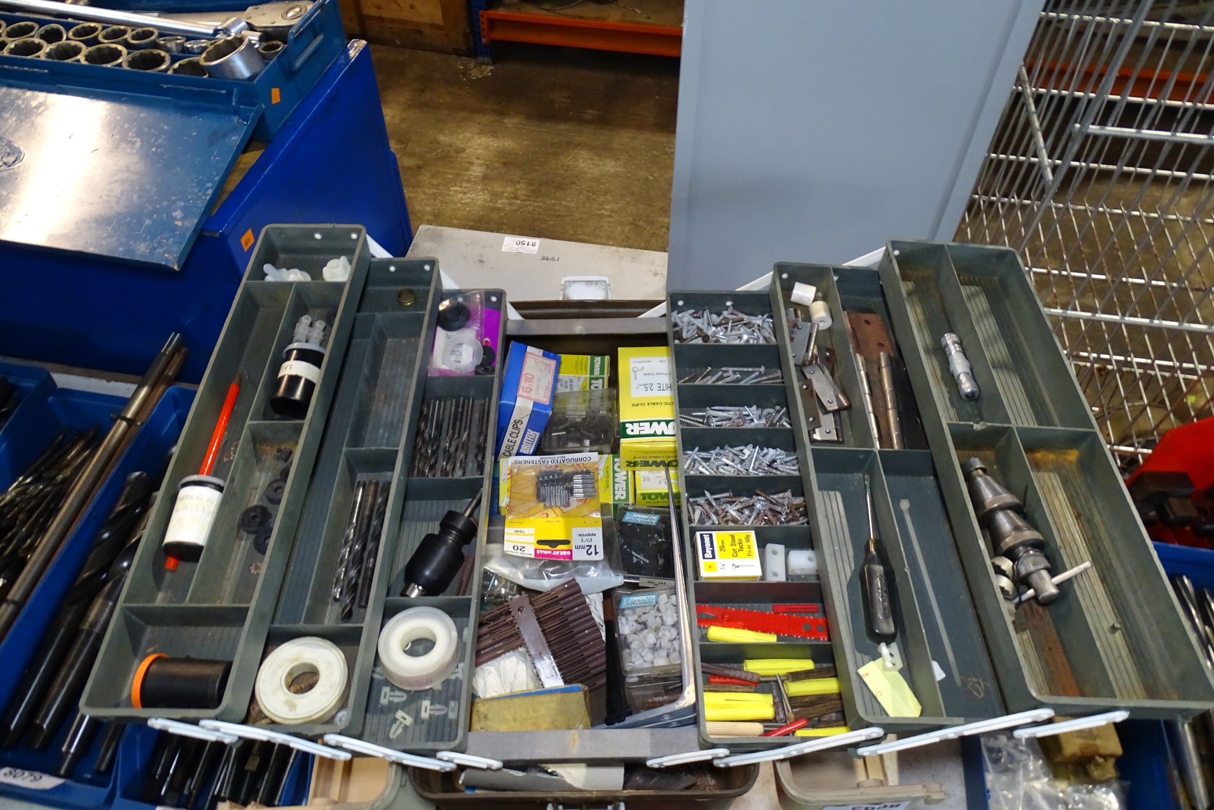 1 x Brown tool box containing a quantity of various screws and other fixings