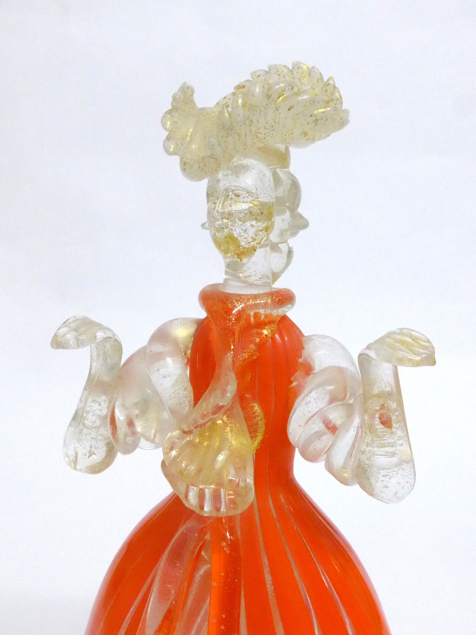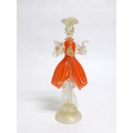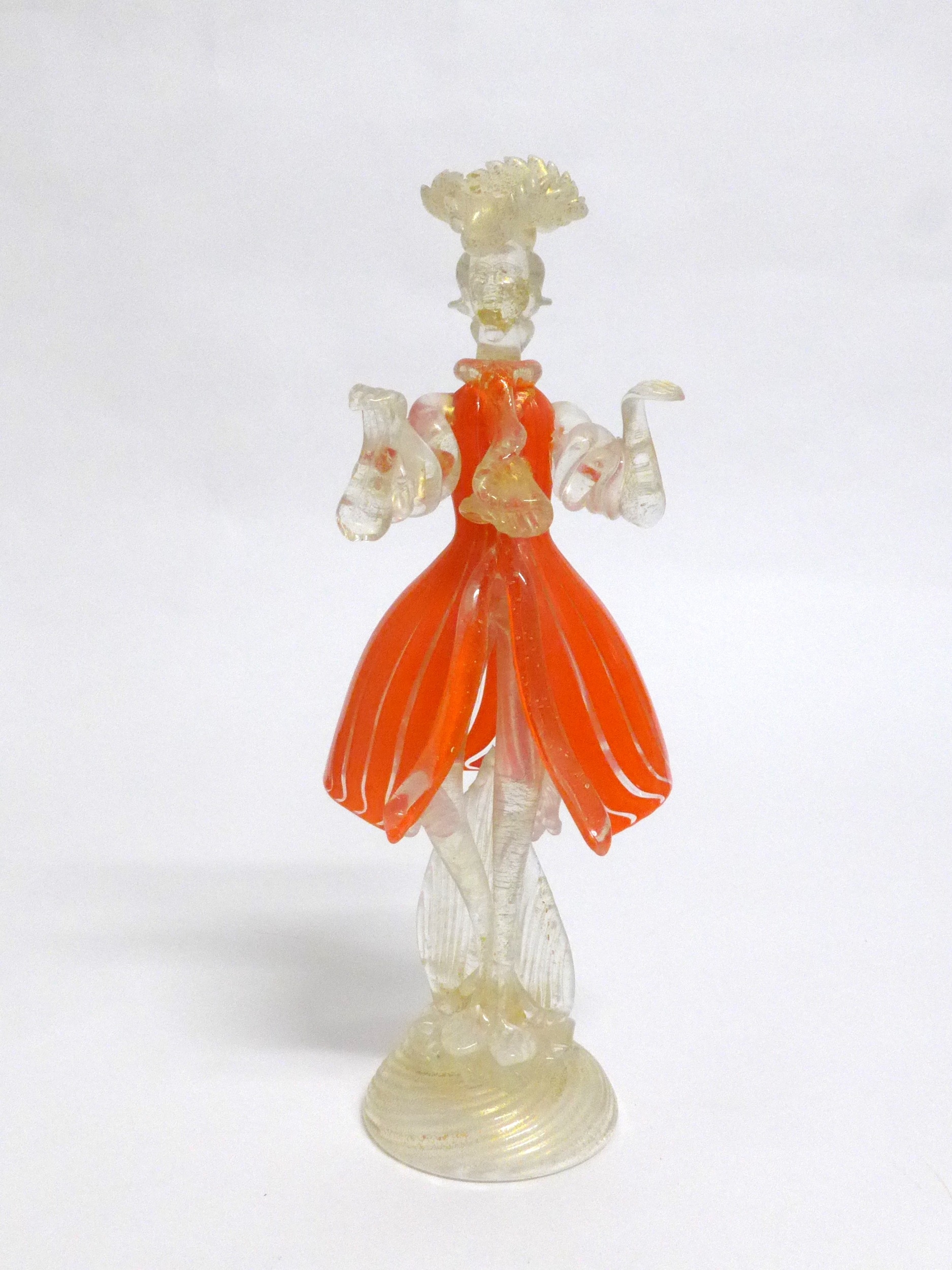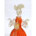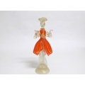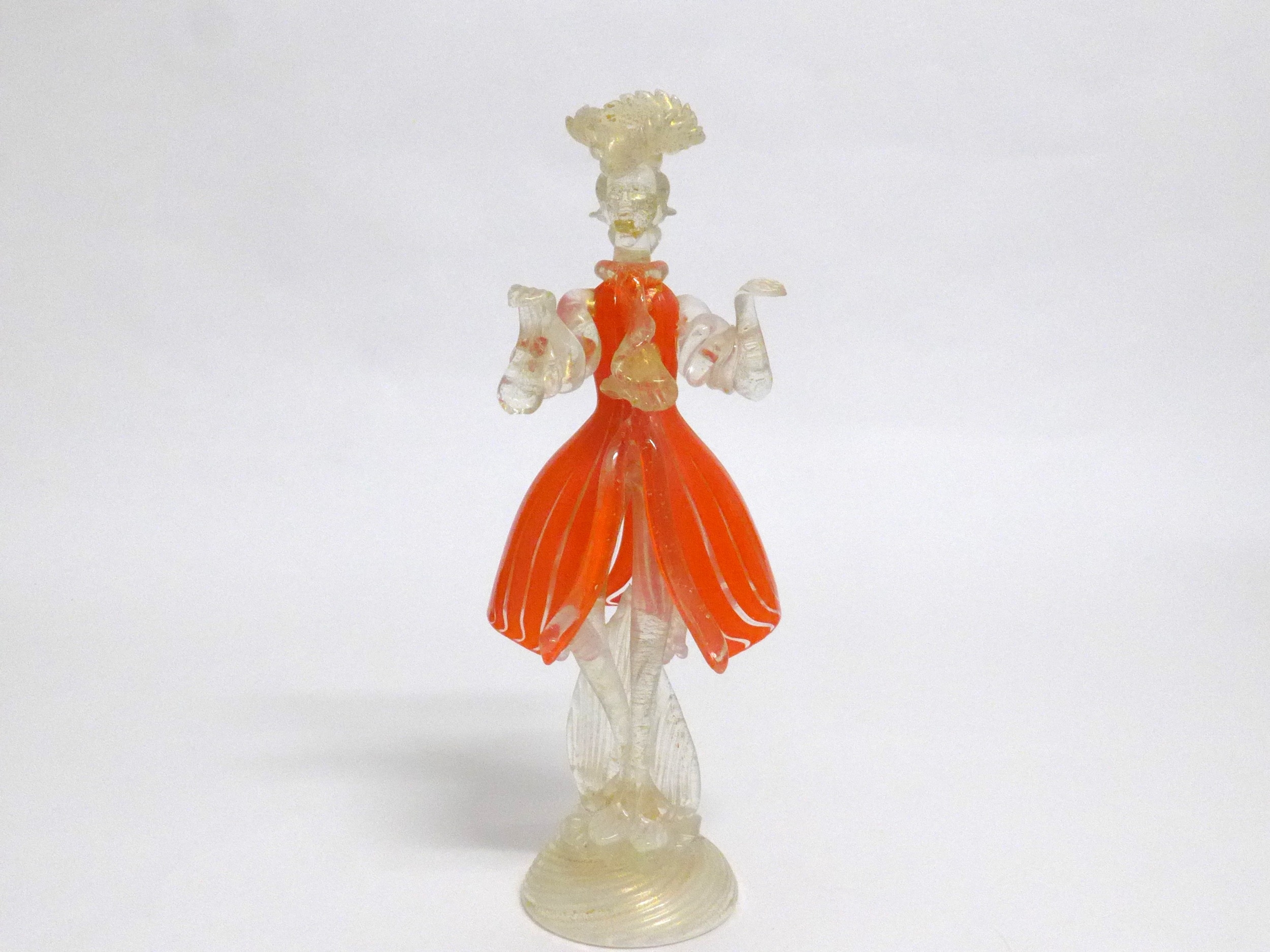 A Murano Glass Venetian Carnival figure in orange and clear glass with gold foil inclusions. 27cm high