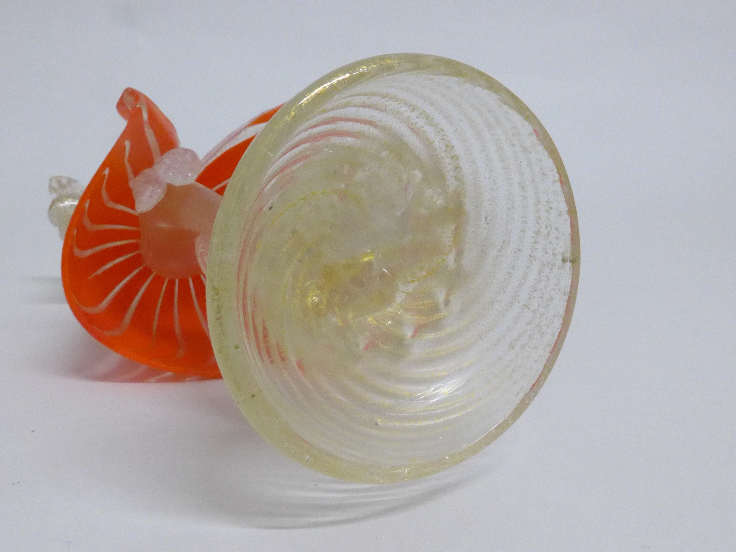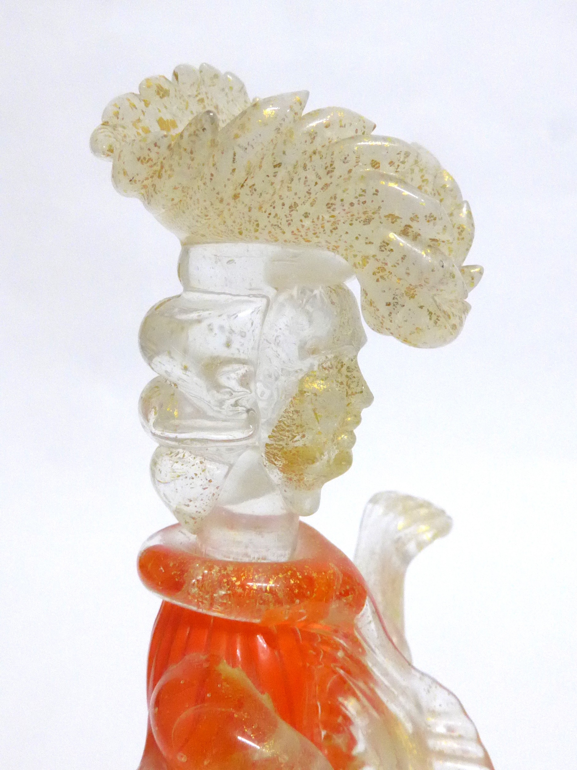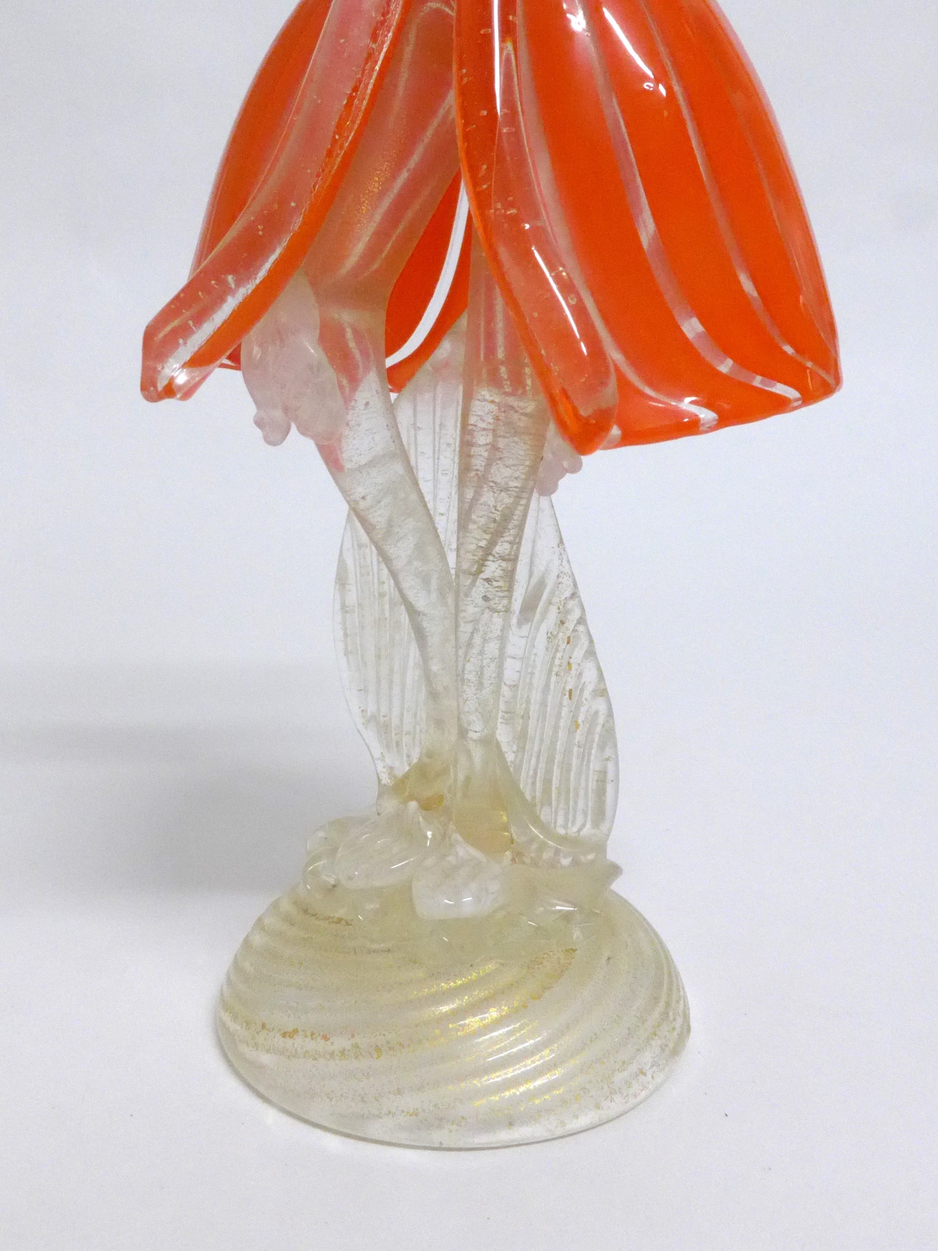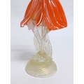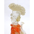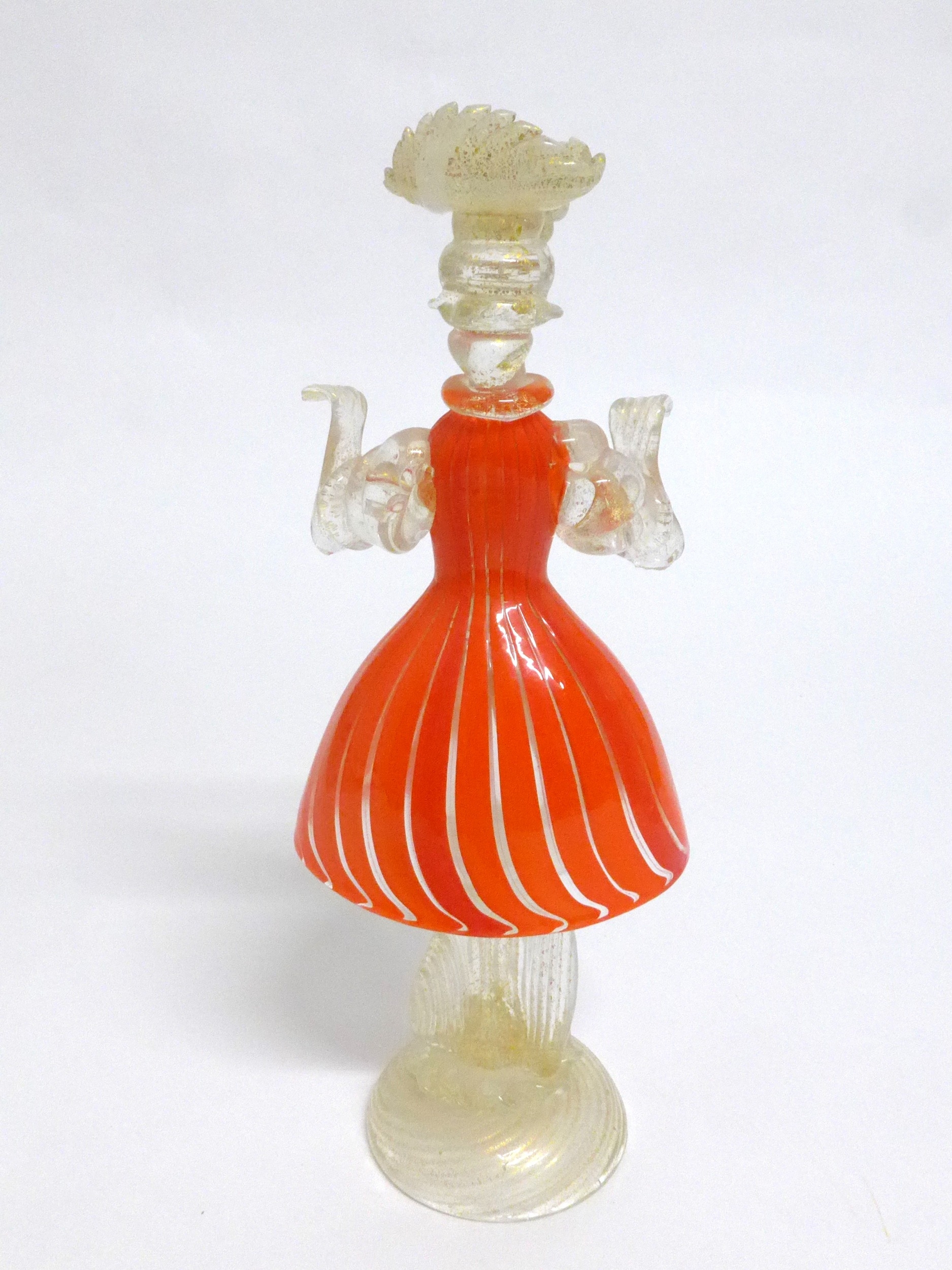 A Murano Glass Venetian Carnival figure in orange and clear glass with gold foil inclusions. 27cm high