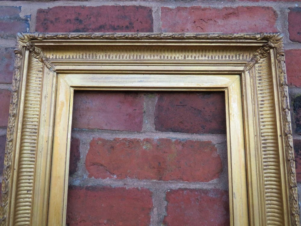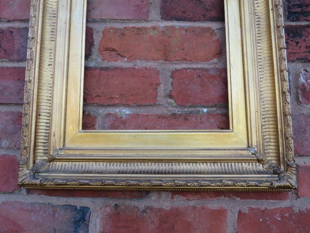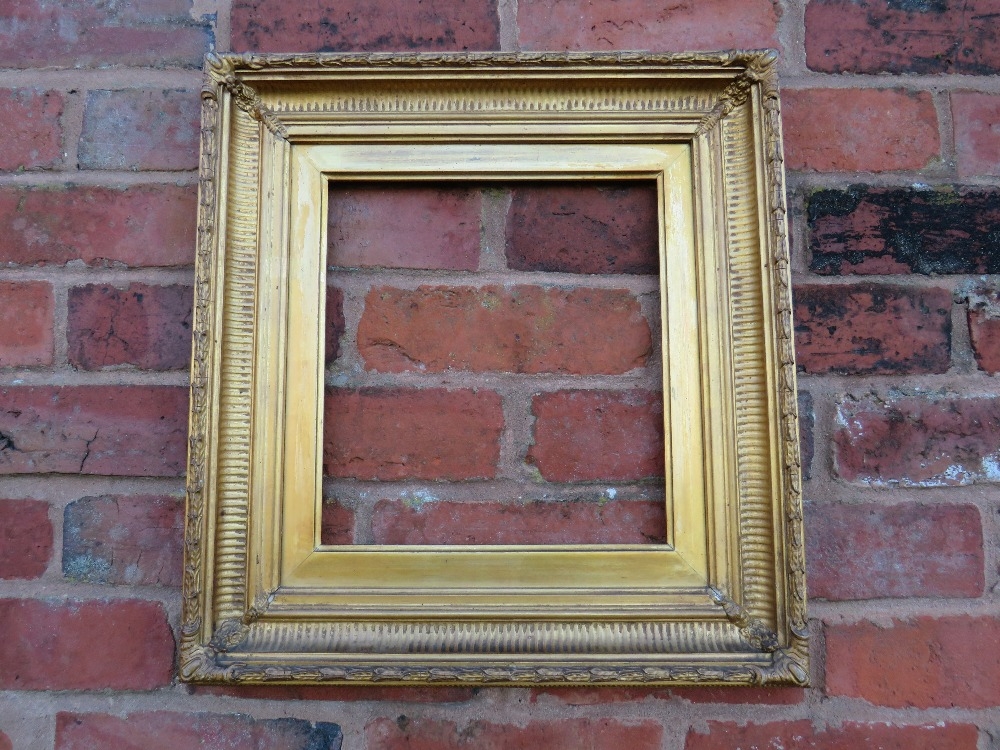 A 19TH CENTURY GOLD FRAME WITH REEDED INNER DESIGN AND ACANTHUS LEAF DESIGN TO OUTER EDGE, with gold slip, frame W 7.5 cm, slip rebate 31 x 28 cm, frame rebate 36.5 x 34 cm
