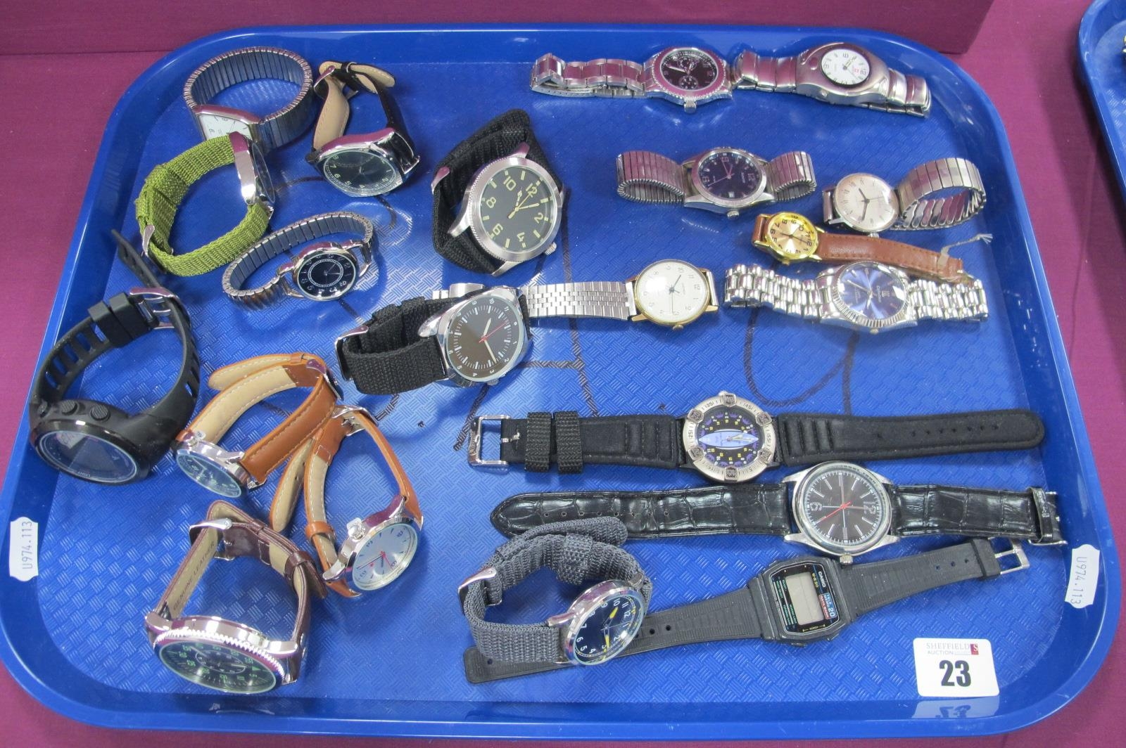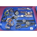 Assorted Gent's Wristwatches, including modern black dial military style etc :- One Tray
