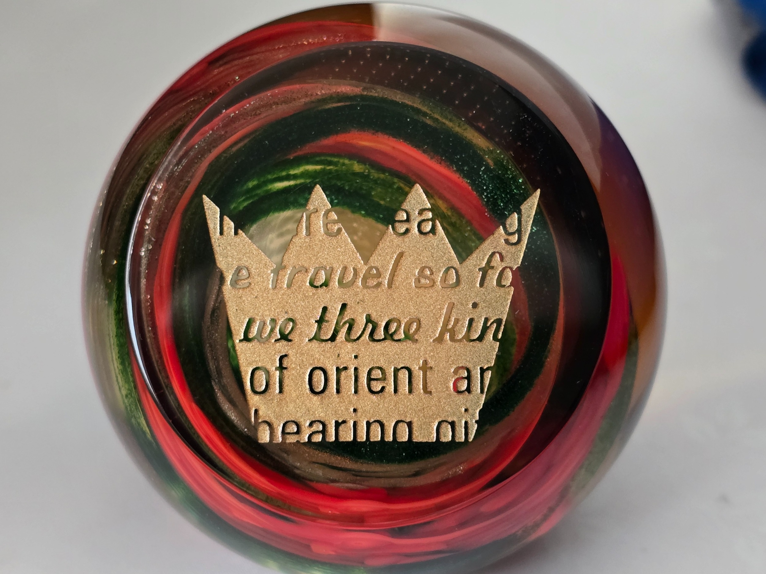 Caithness Glass Paperweigh: "Golden Crown" from 2001. See photo. Excellent condition. 79mm diam