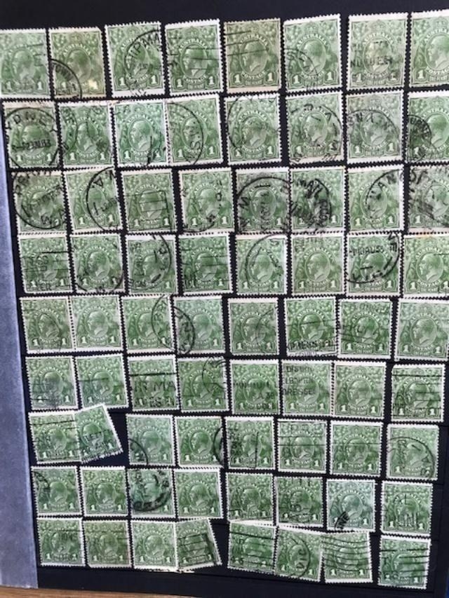 Australia KGV 1d green on accum in s/bk. Unchecked by us. (623)