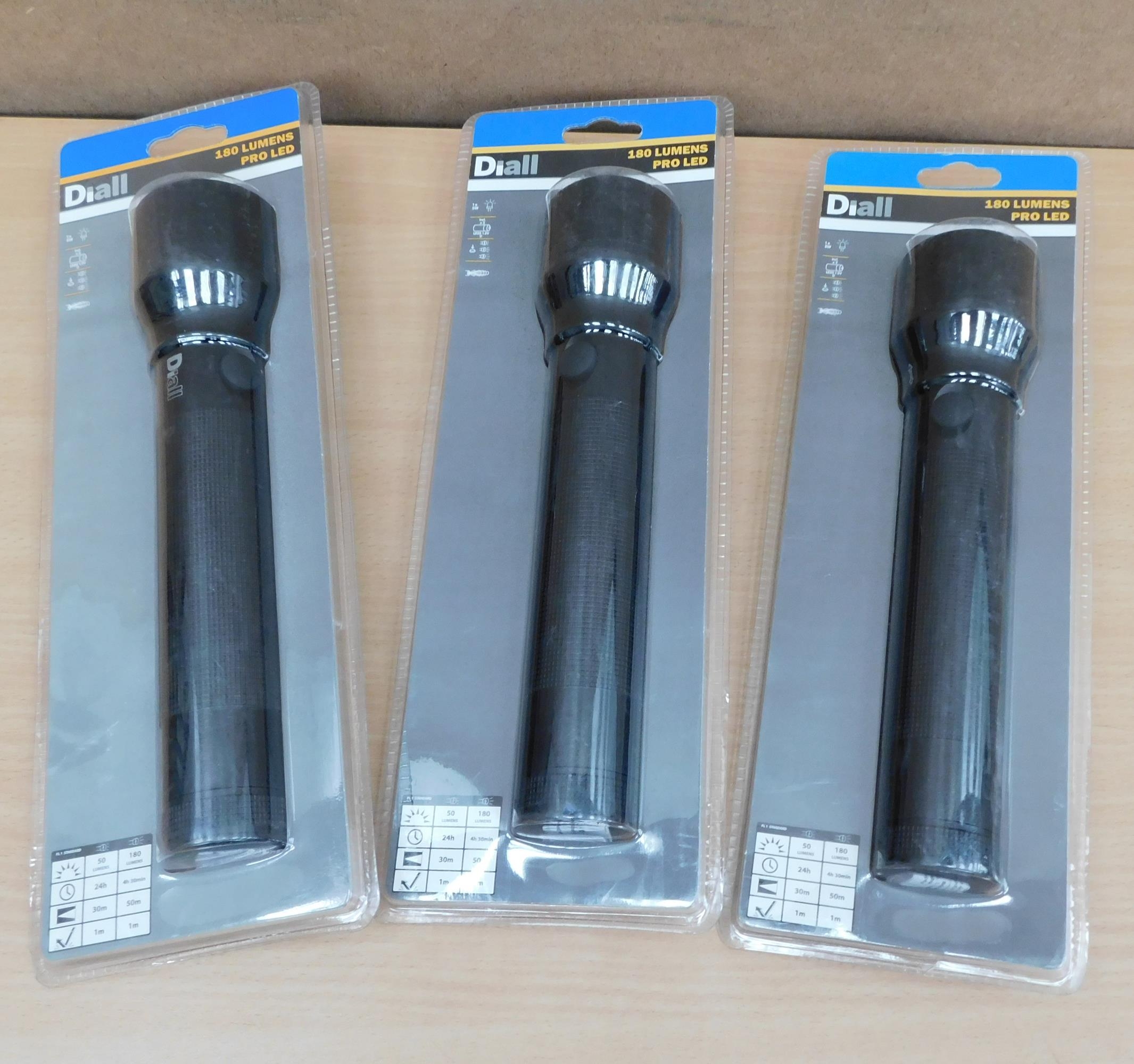 3x Diall new/sealed 180 lumens pro LED torches