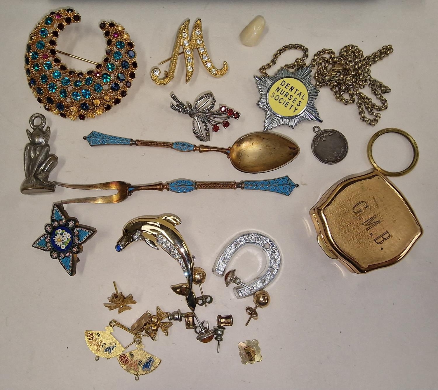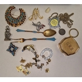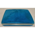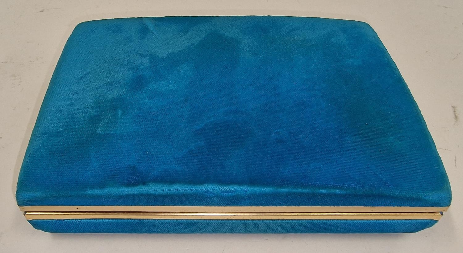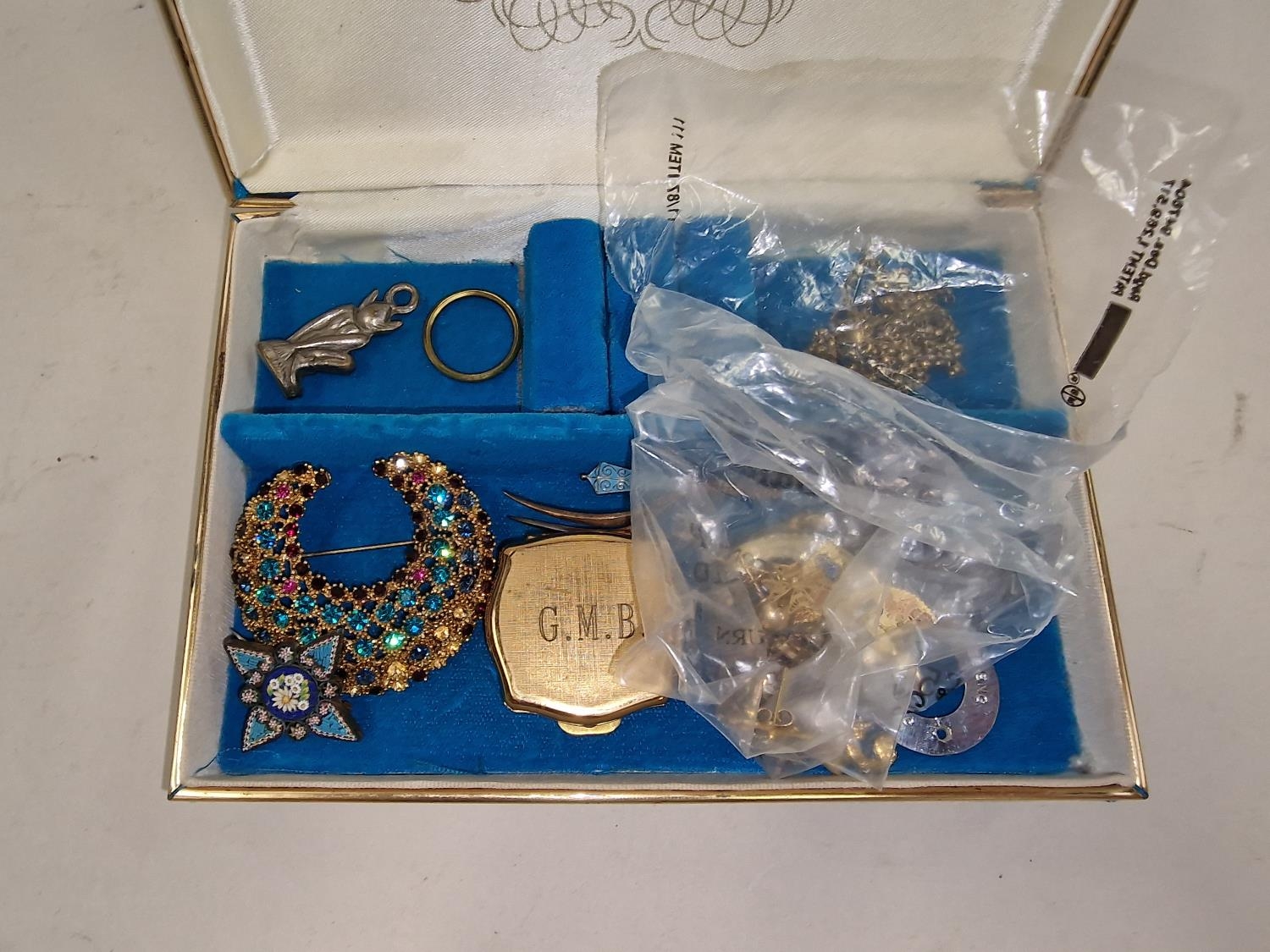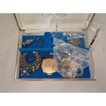 Small blue jewellery box containing a collection of costume jewellery.