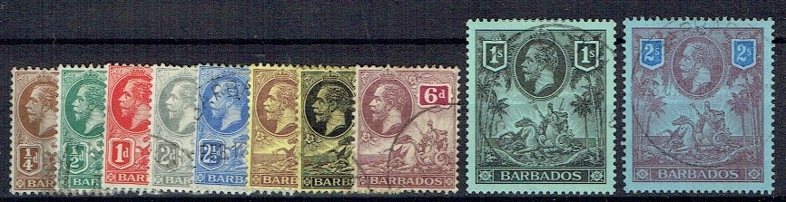 BARBADOS - 1912-16 Set of 10 values to 2s fine used, SG 170/179.