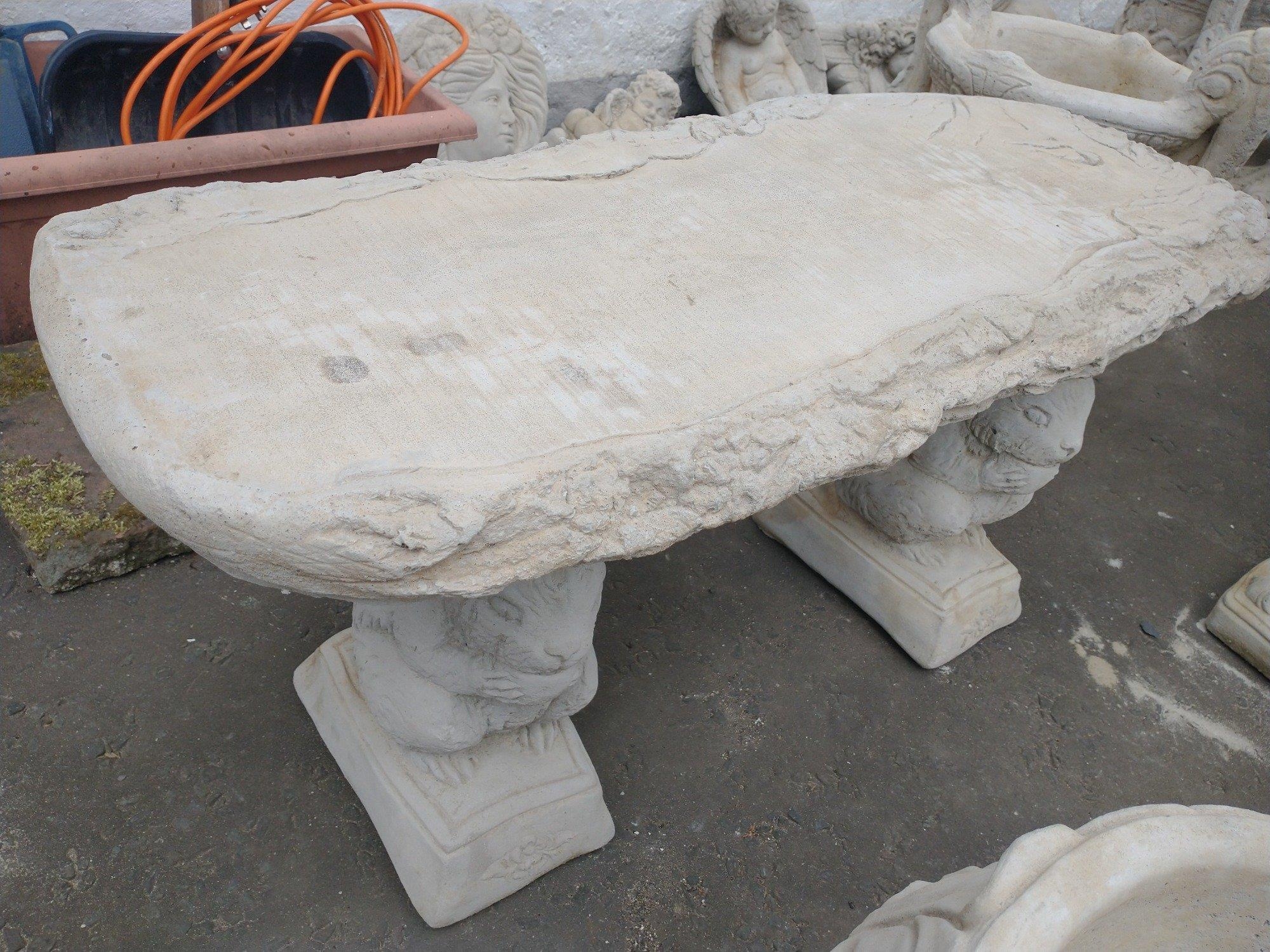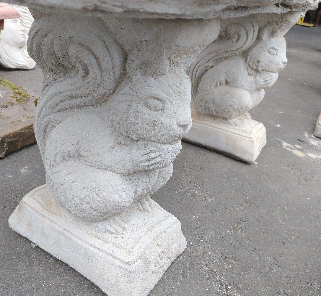 A stonework garden bench on squirrel plinths with timber style seat 100cmW x 39D x 44H - brand new item