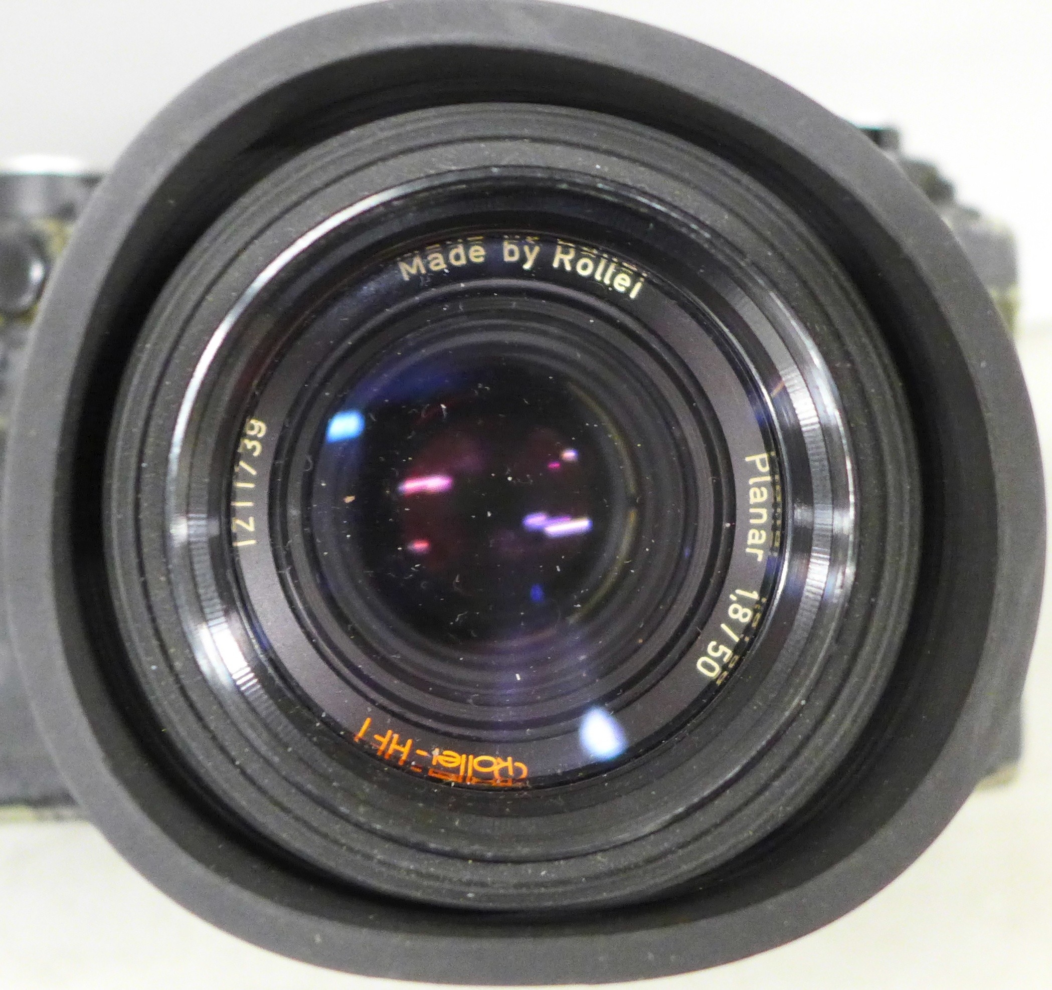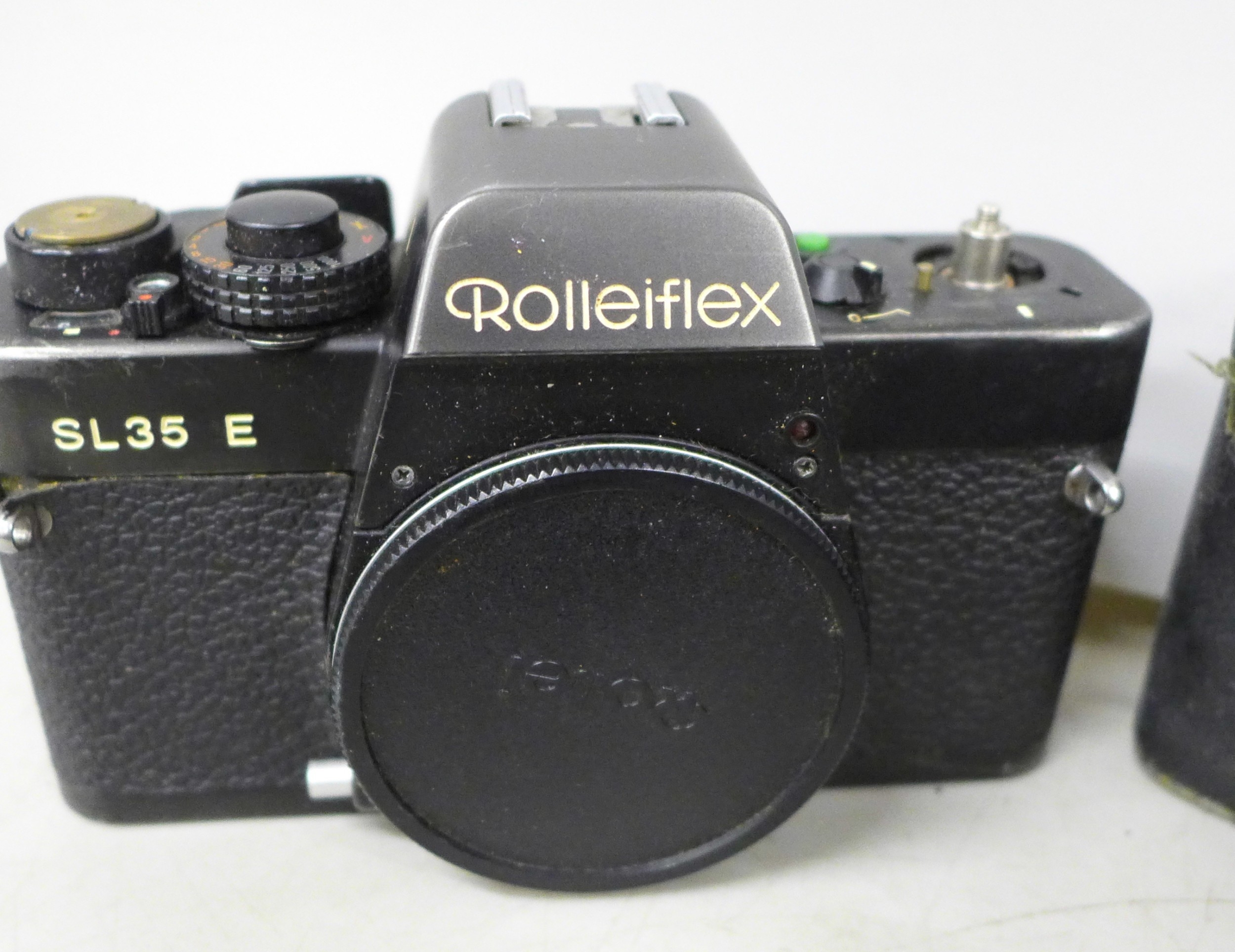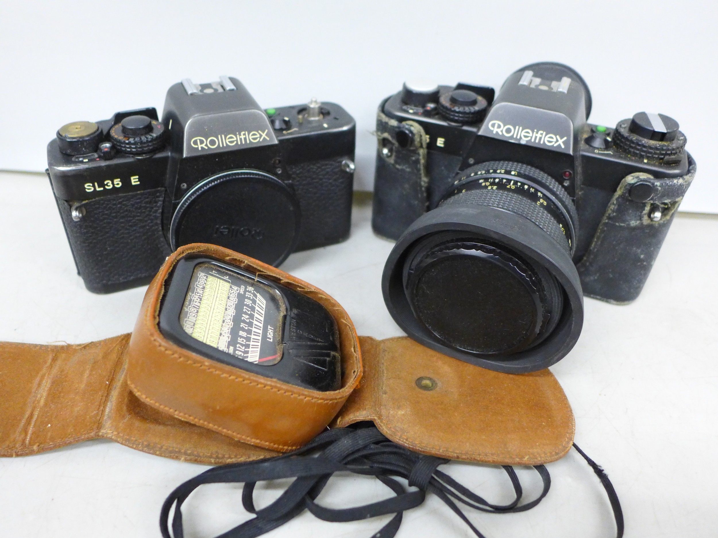 Two Rolleiflex SL35E camera bodies, one with attached Rollei Planar 1.8/50 lens