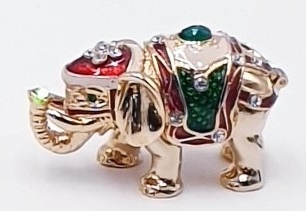 METAL/ENAMELLED HINGED LIDDED TRINKET BOX FASHIONED AS AN ELEPHANT
