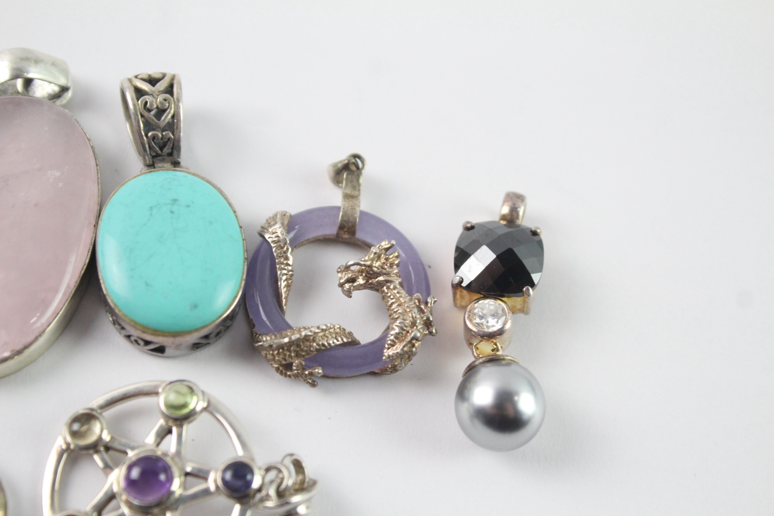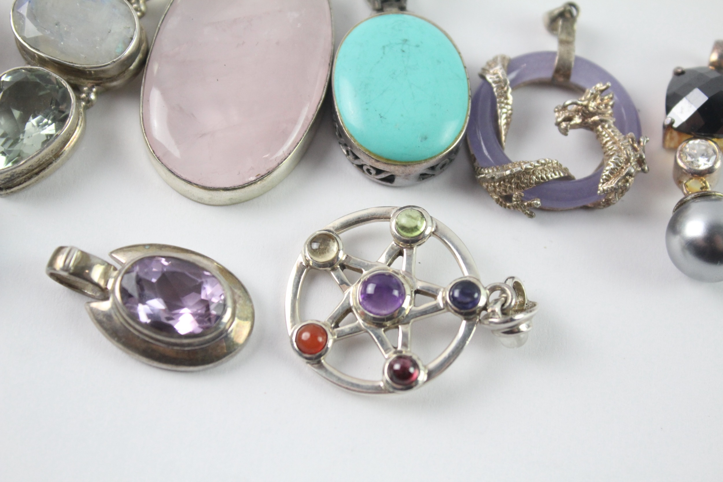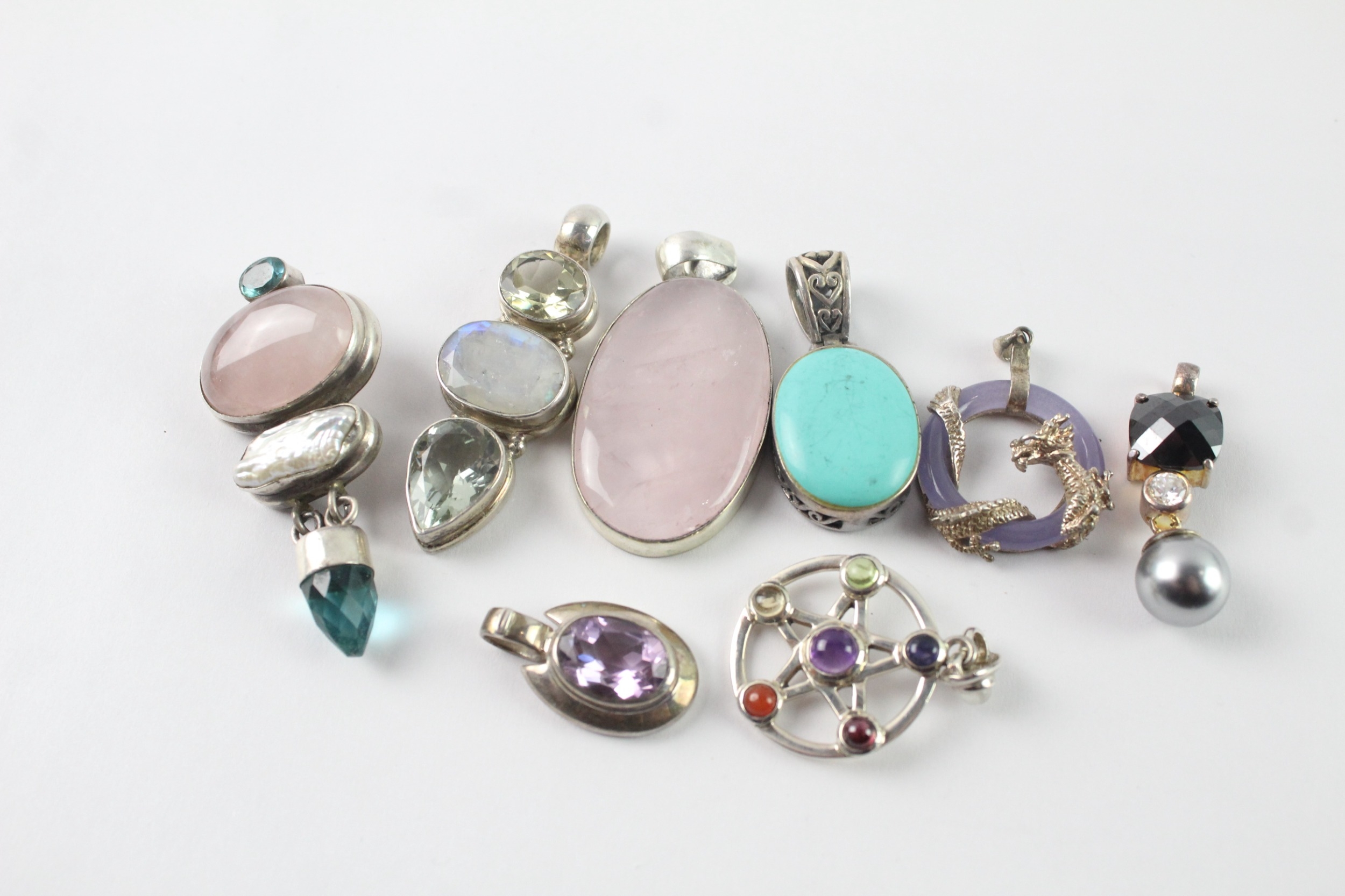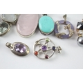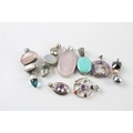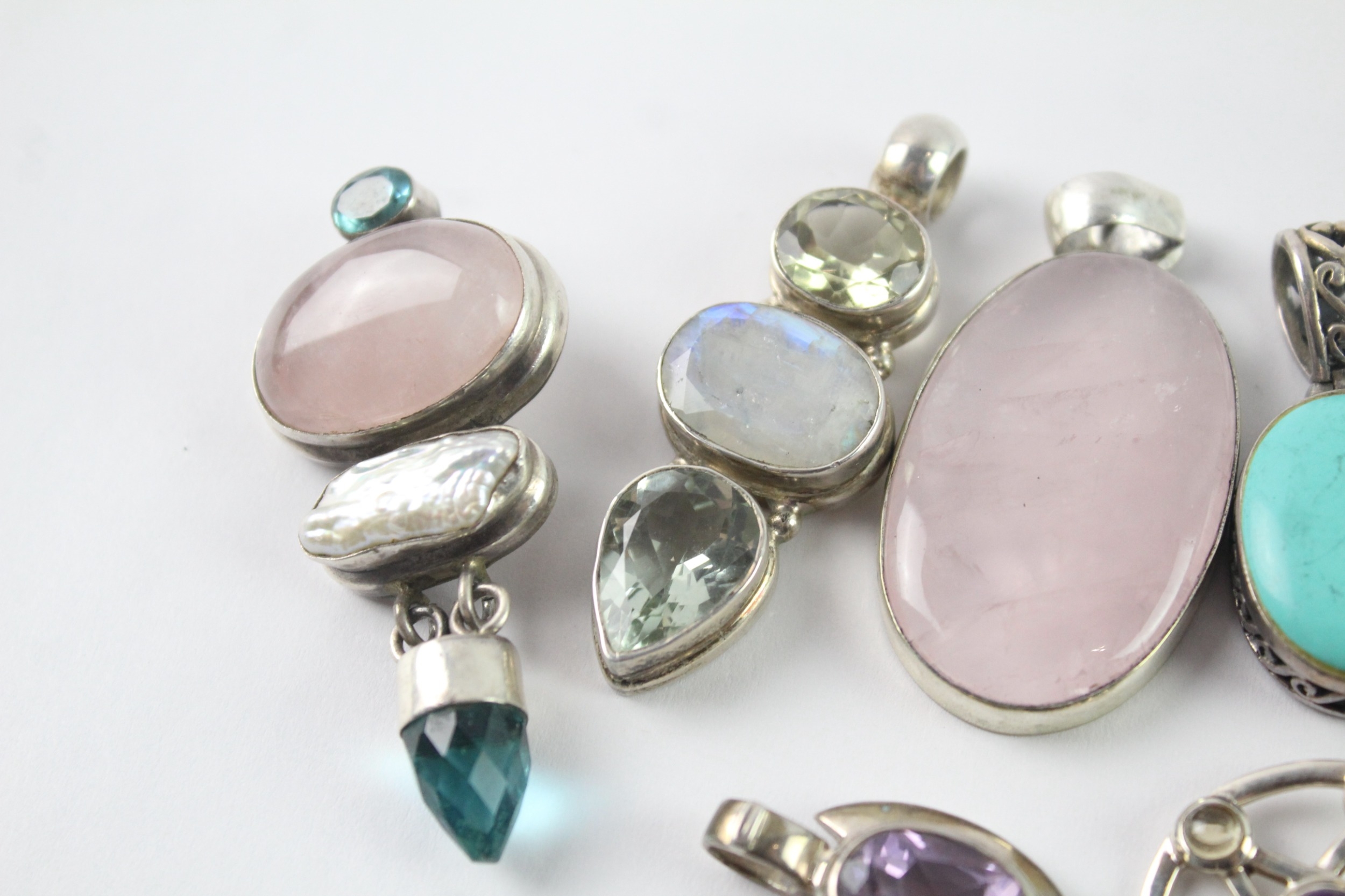 Collection of Sterling Silver Gemstone Pendants inc. Rose Quartz x 8 90g