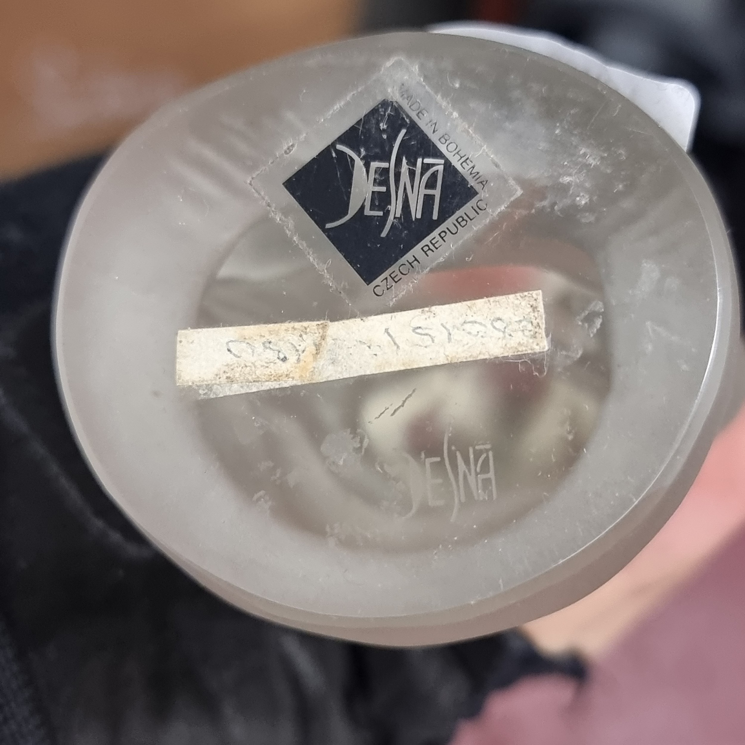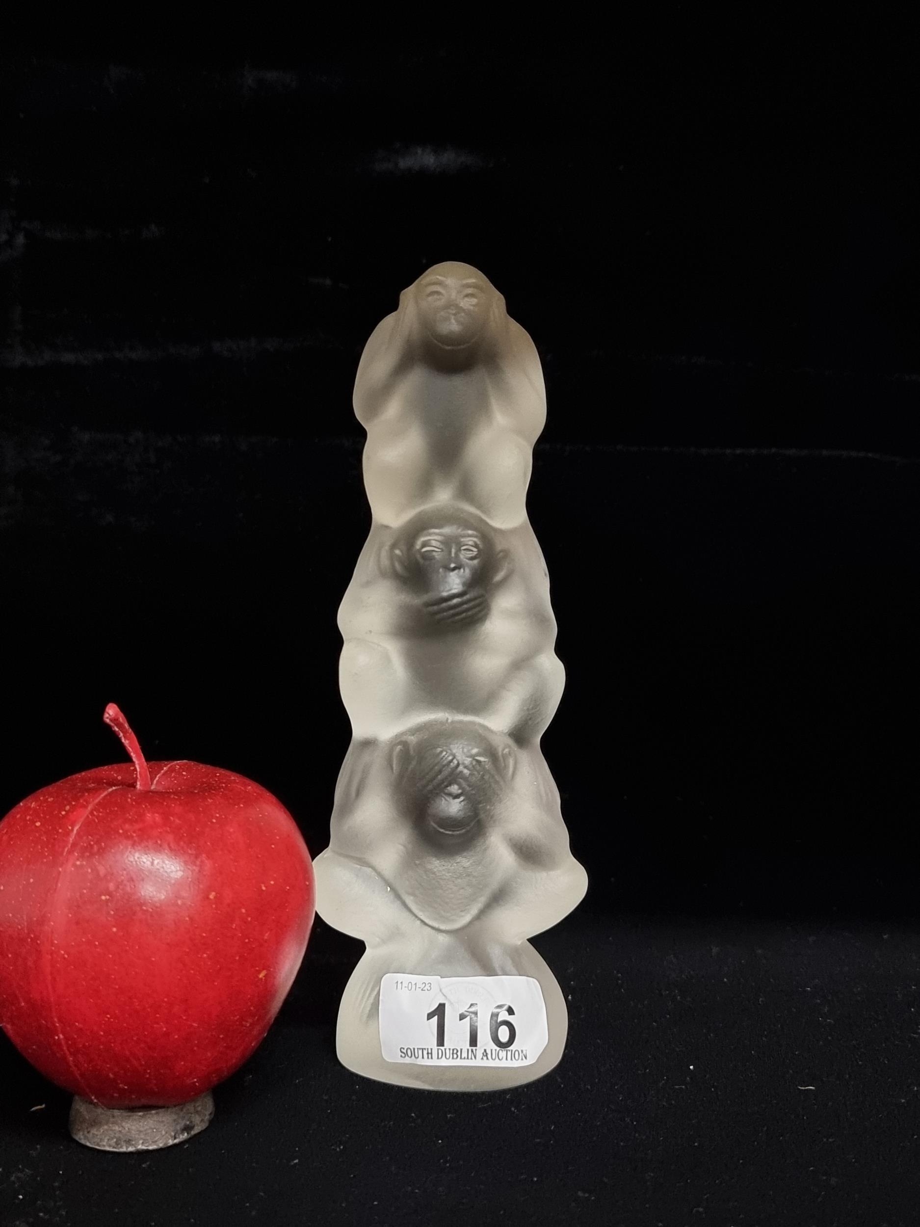 A great Desna Bohemian glass figurine of the Three Wise Monkeys. In good condition, with original sticker to base.
