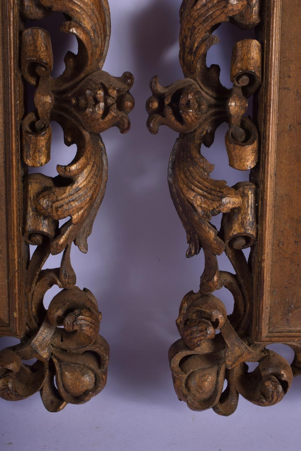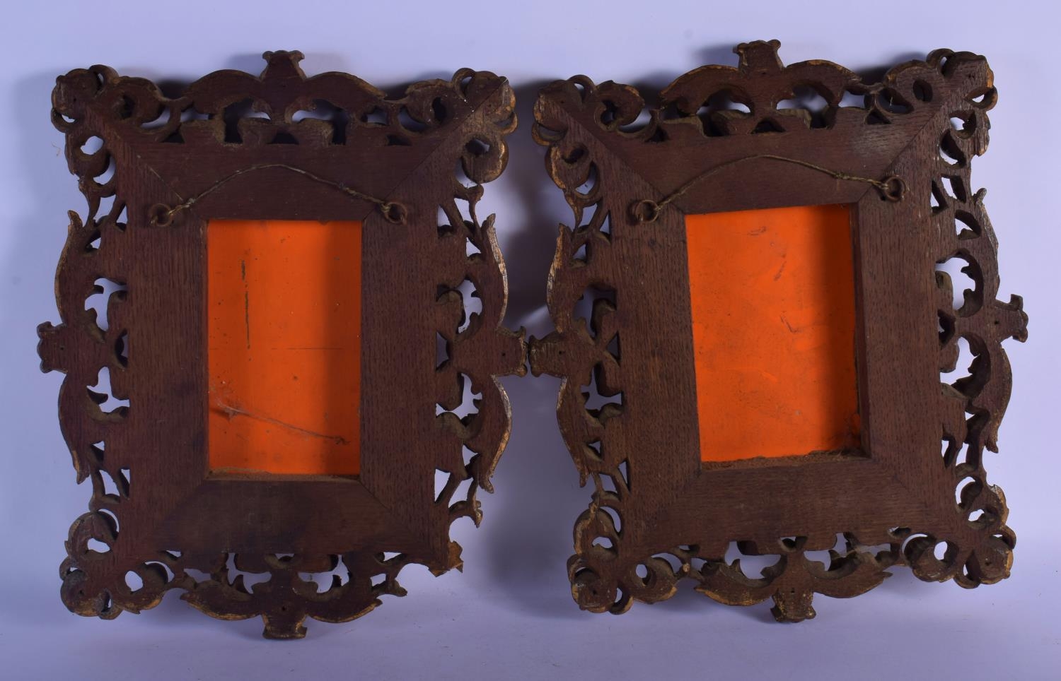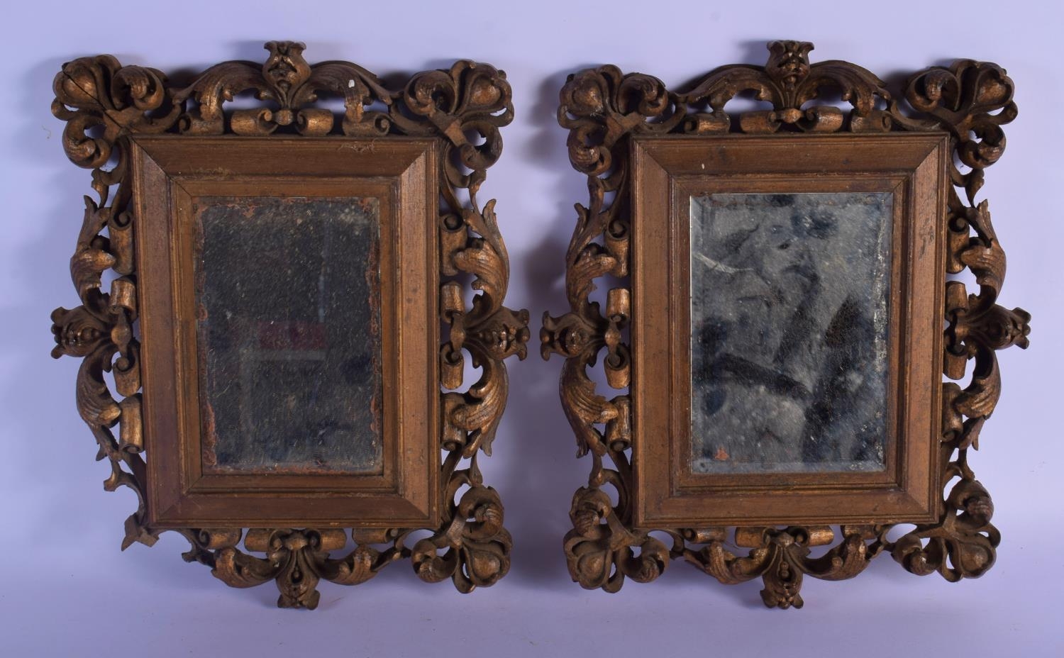 A PAIR OF 19TH CENTURY CONTINENTAL CARVED AND GILDED WOOD MIRRORS of naturalistic form. 32 cm x 26 cm.