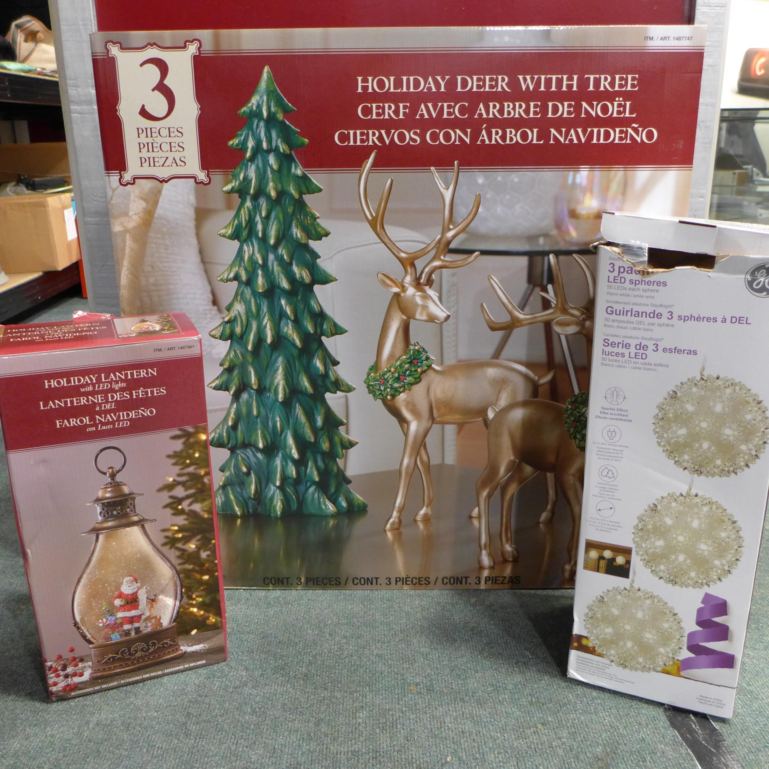 Led Spheres Set Of 3 , Snow Globe Lantern and Set Of 2 Deers With Tree (244-823,836,837) * This lot is subject to vat