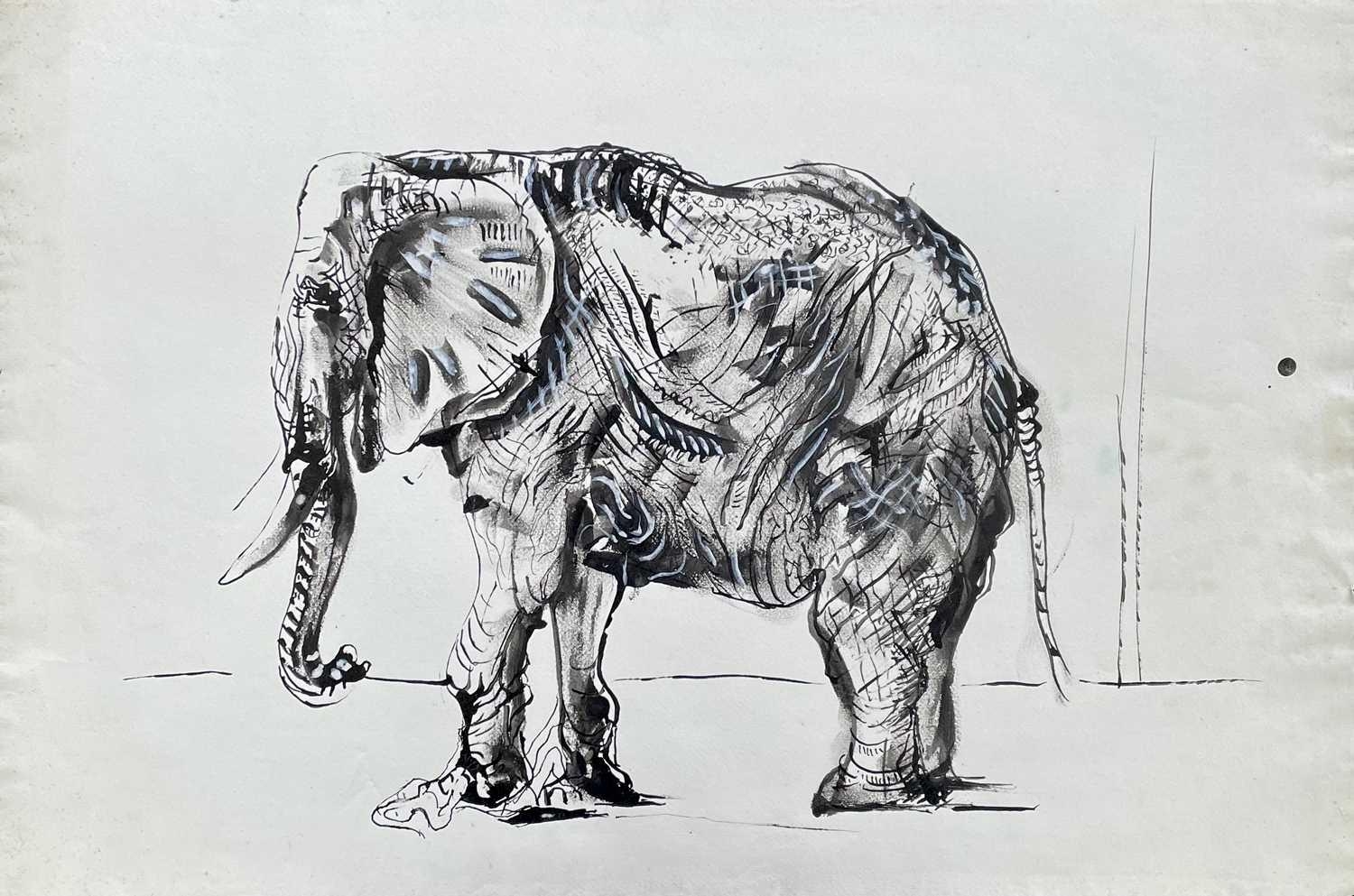 Sven BERLIN (1911-1999) Elephant Ink heightened with white 40x56cm