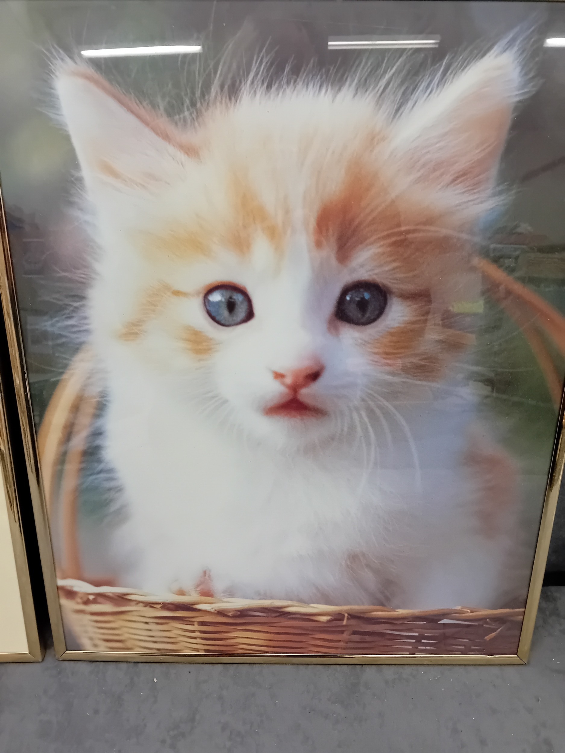 1 white and ginger cat in basket
