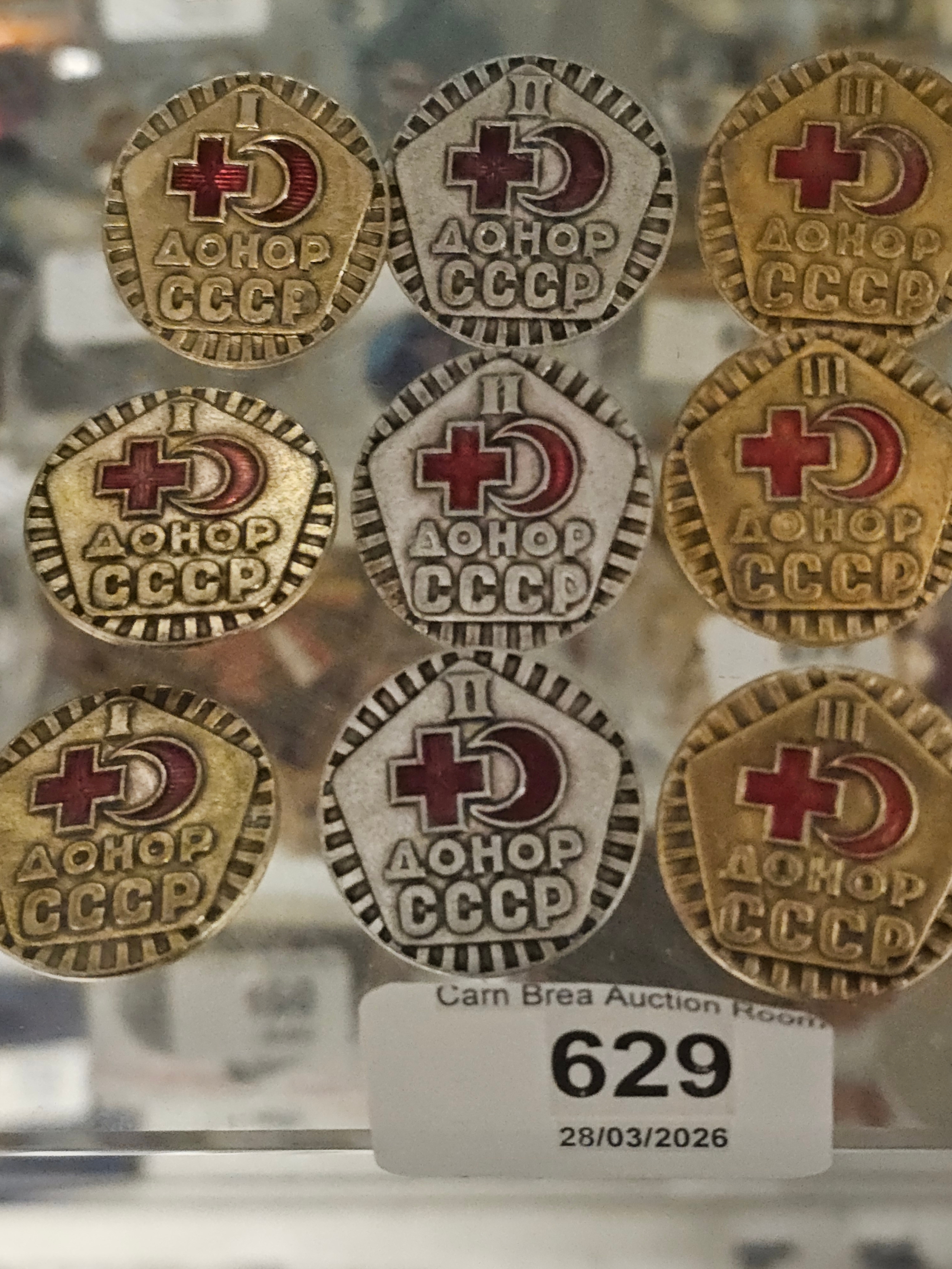 3 Sets of pin badges "Donor of the USSR", all degrees