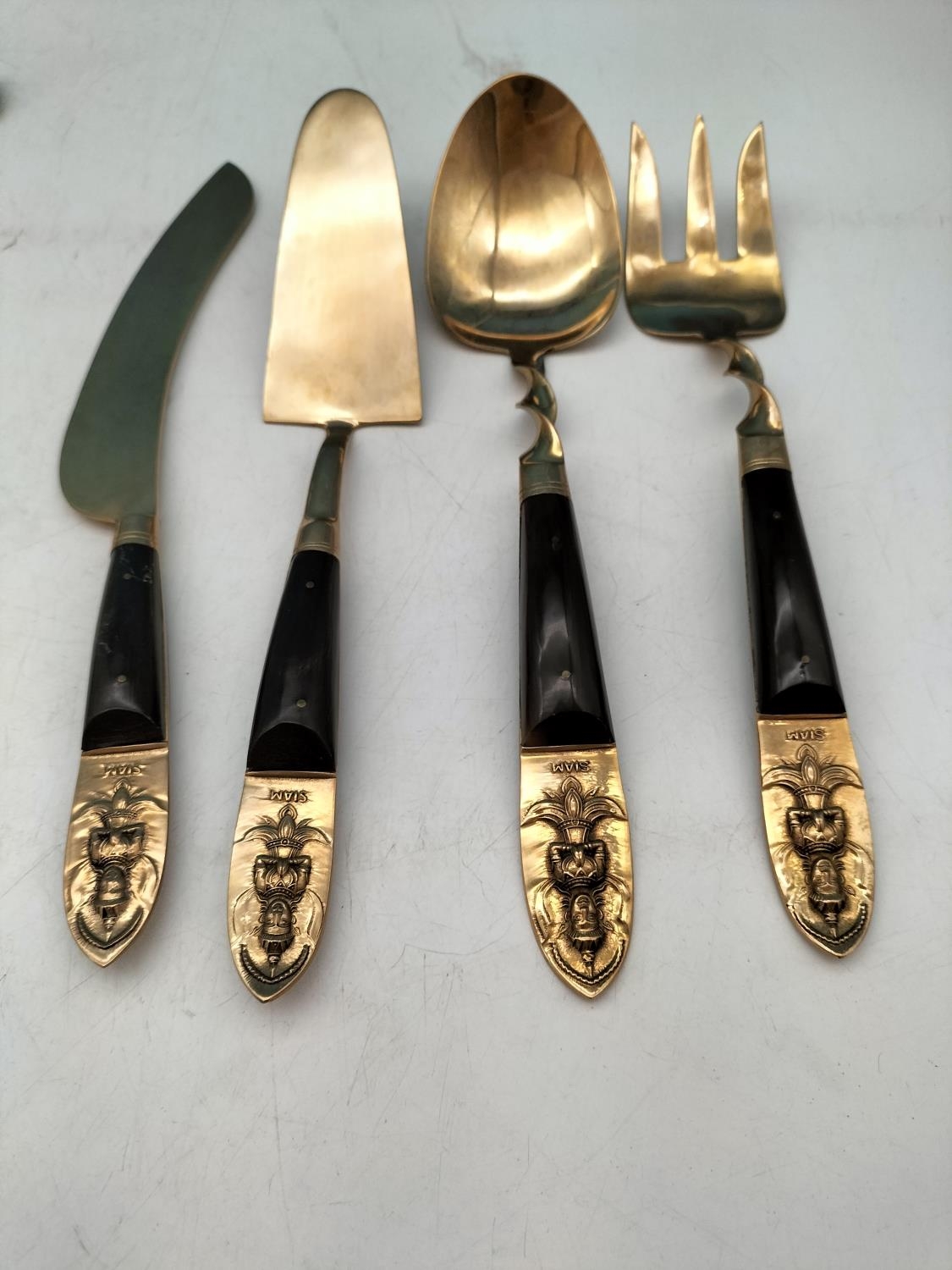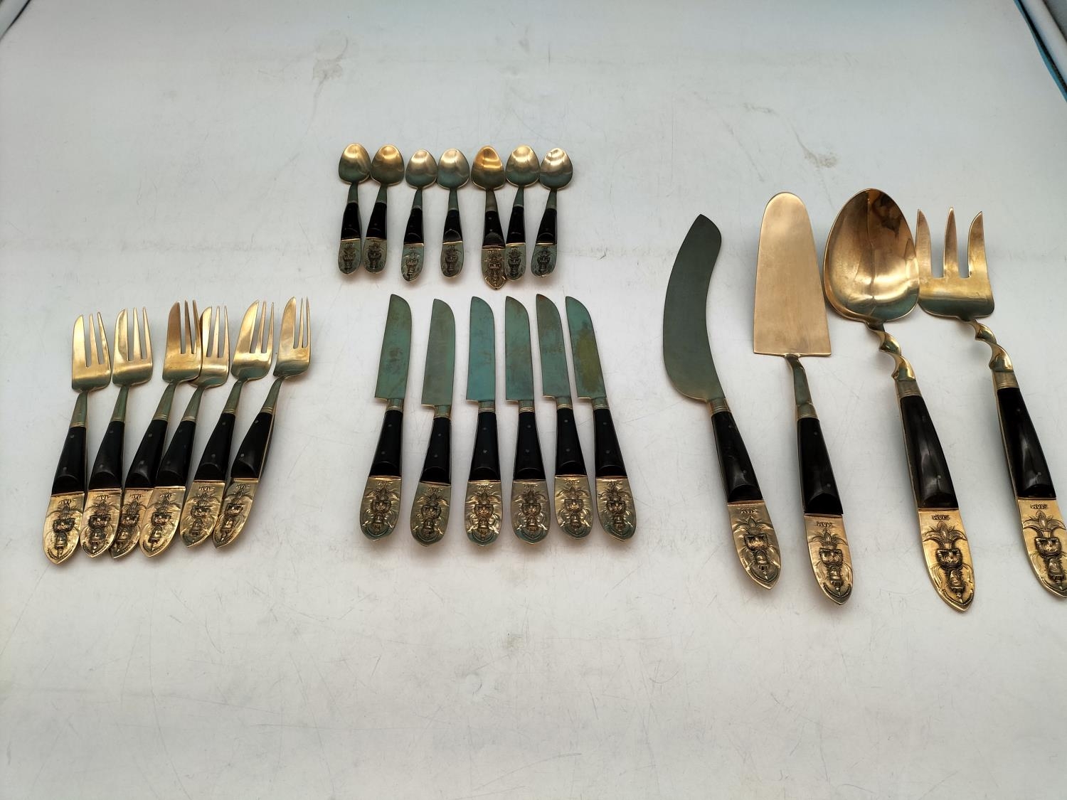 Collection of Siam Thailand 23 Piece Bronze Tableware to include Servers (4), Pasty Knife and Forks (6) and Coffee Spoons (7).