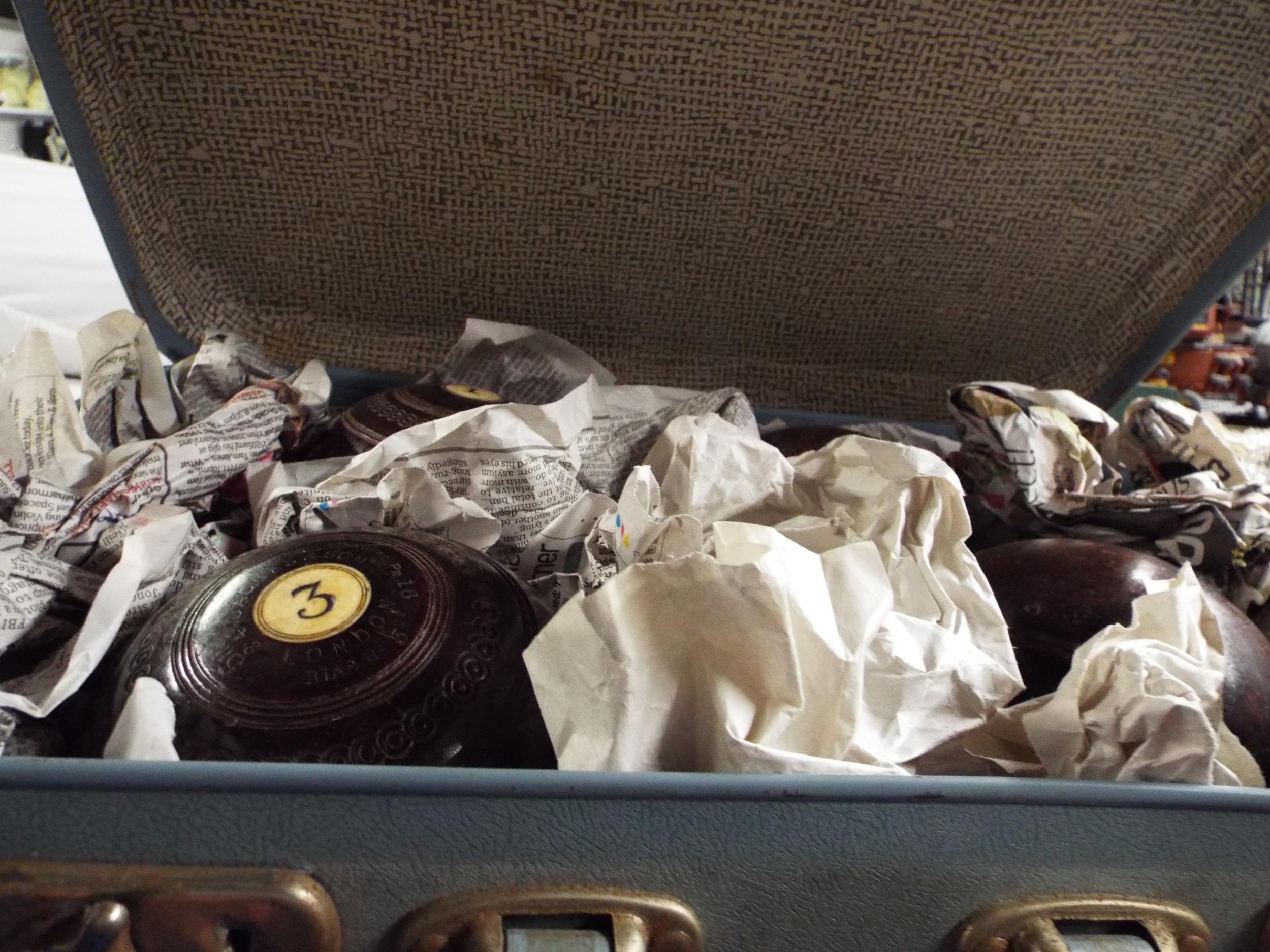 A set of four vintage wooden Jaques & Son London lawn bowls