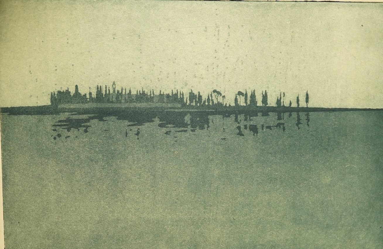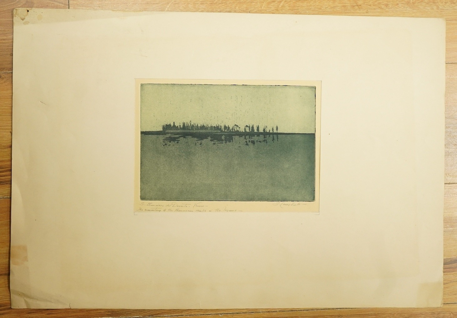 Stella Langdale (1880-1976), 'S. Francisco del Deserto, Venice', signed and inscribed in pencil to the margin, etching with aquatint, mounted, framed, 17 x 24cm