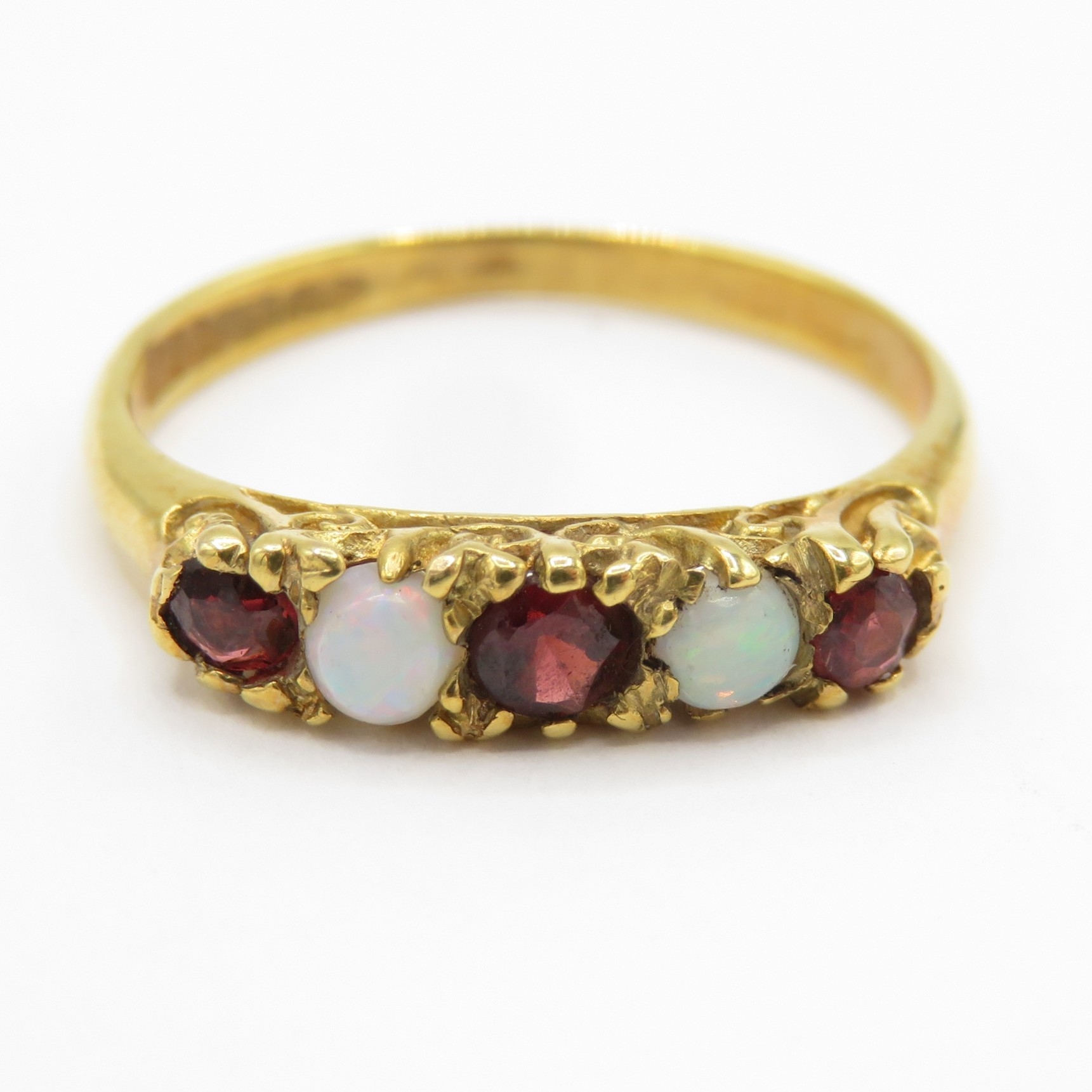 9ct gold opal five stone ring (1.7g) Size M