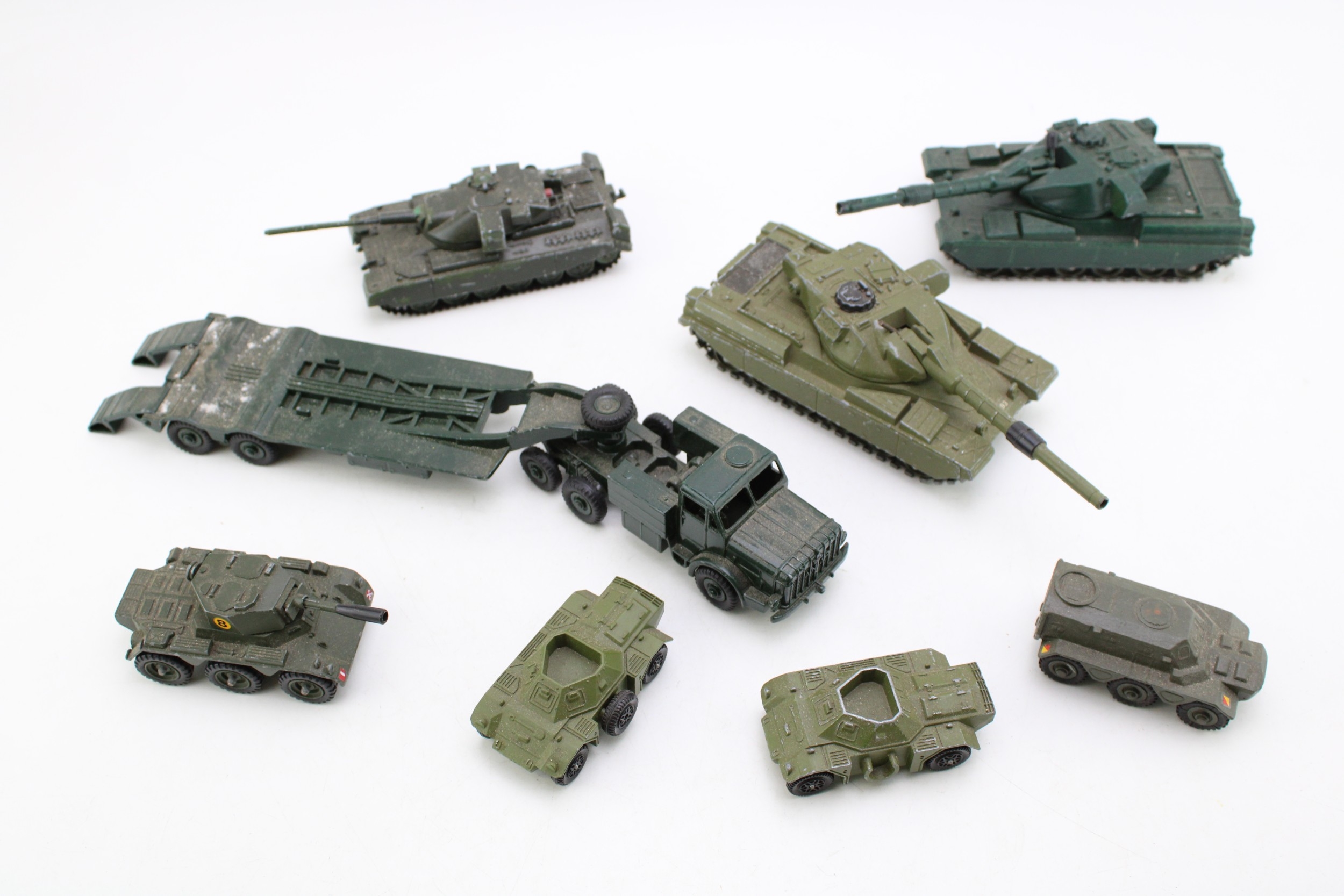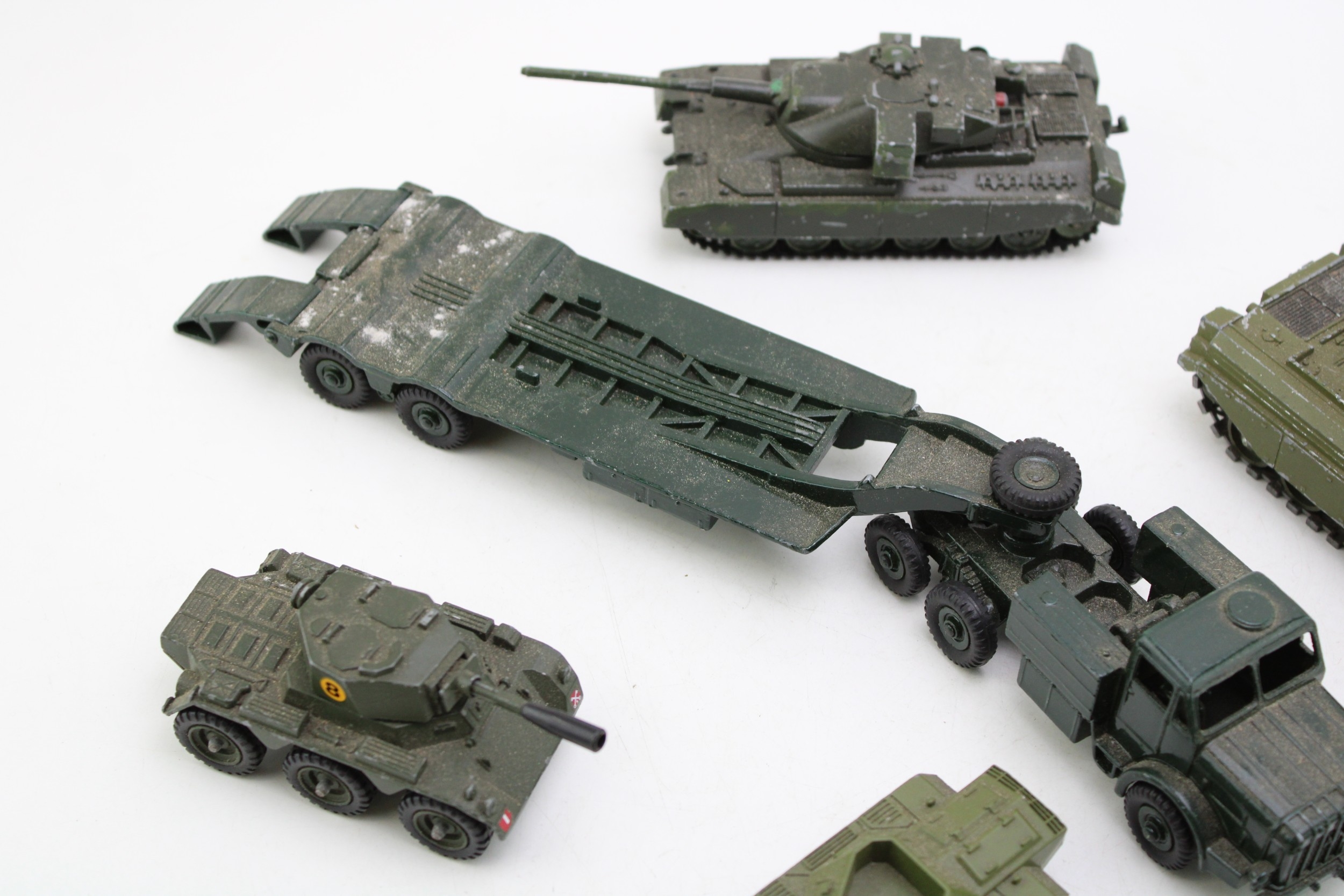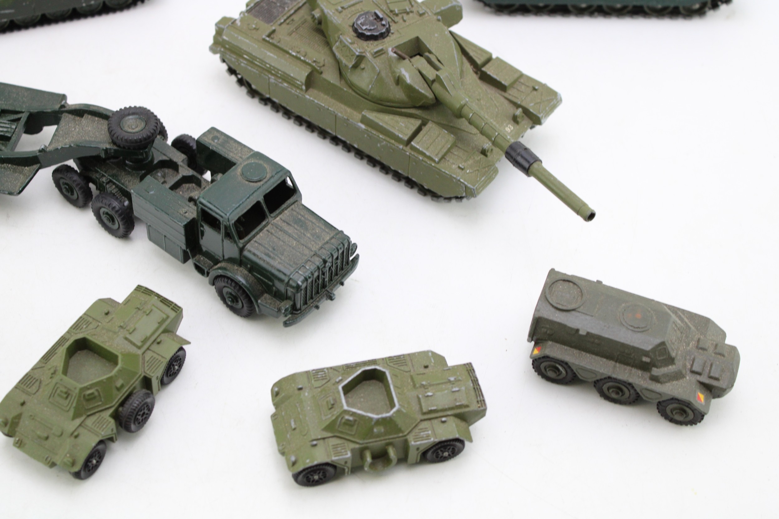 A collection of die-cast model military vehicles, to include Dinky Cheiftain tank, Corgi Toys Saladin and other similar items, (Qty).