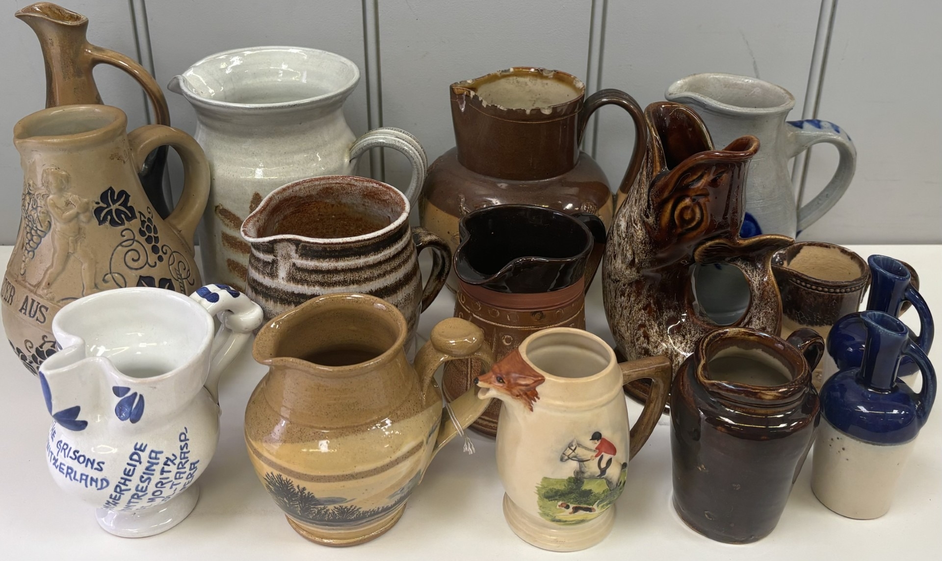 Collection of 15 jugs. To include a Gluggle jug, Delft, etc.