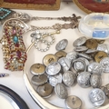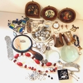 A collection of Costume Jewellery, Hand Mirror, military Buttons etc