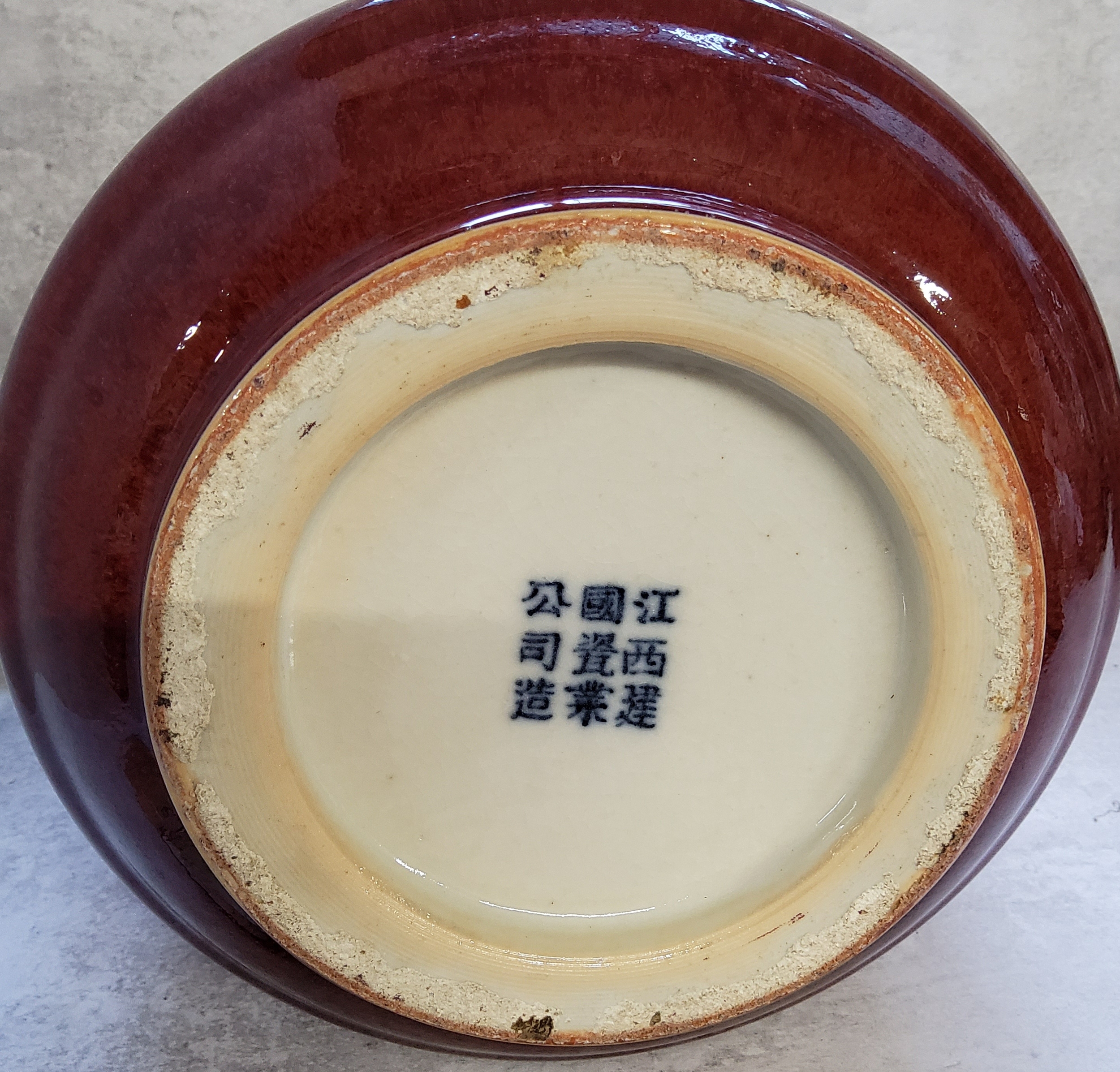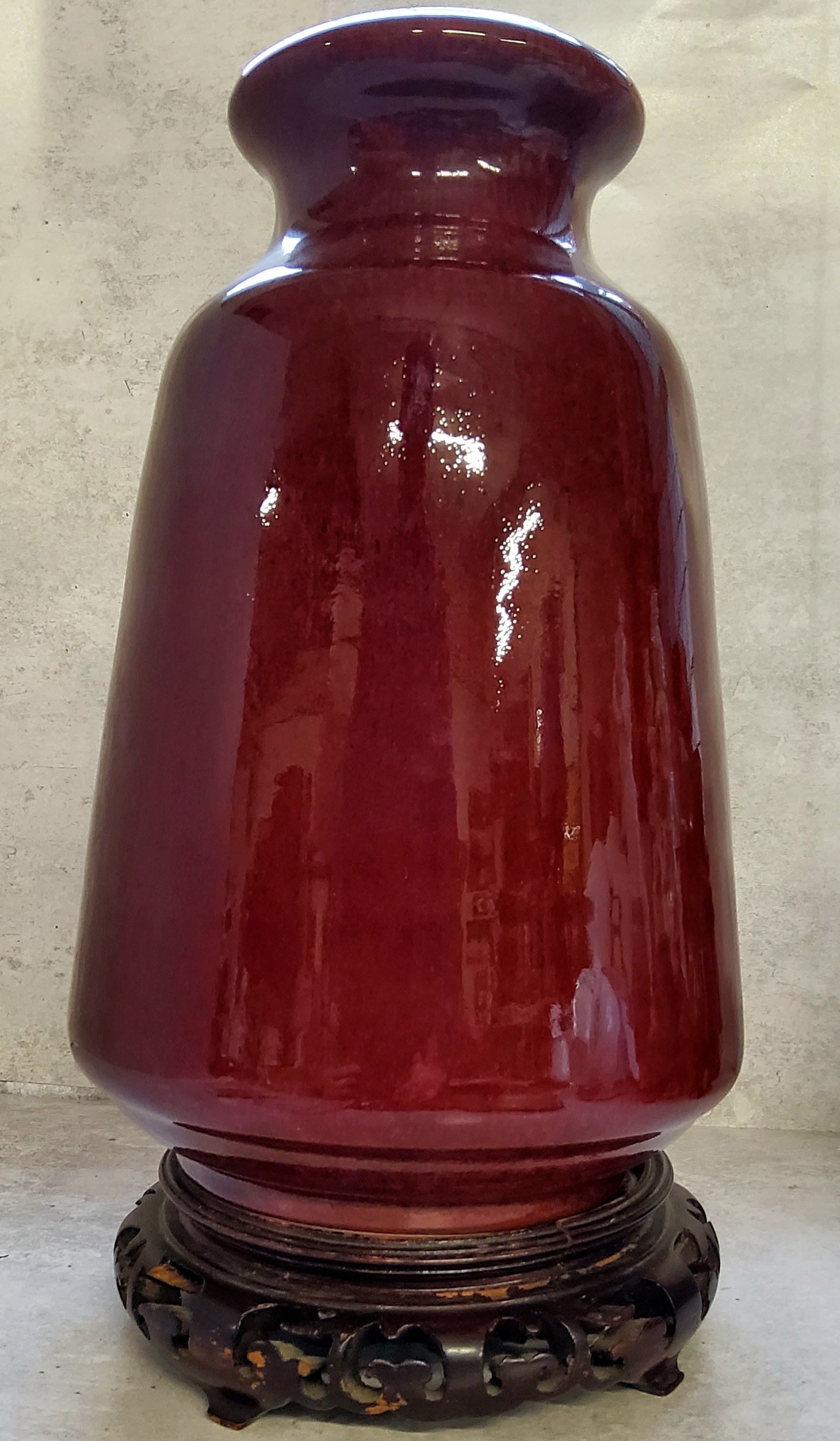 Oriental Ceramics - a large Chinese Republic Period flambé glazed vase, Jiangxi province, hand painted nine character marks to base,on stand. 39cm high. Excellent condition.