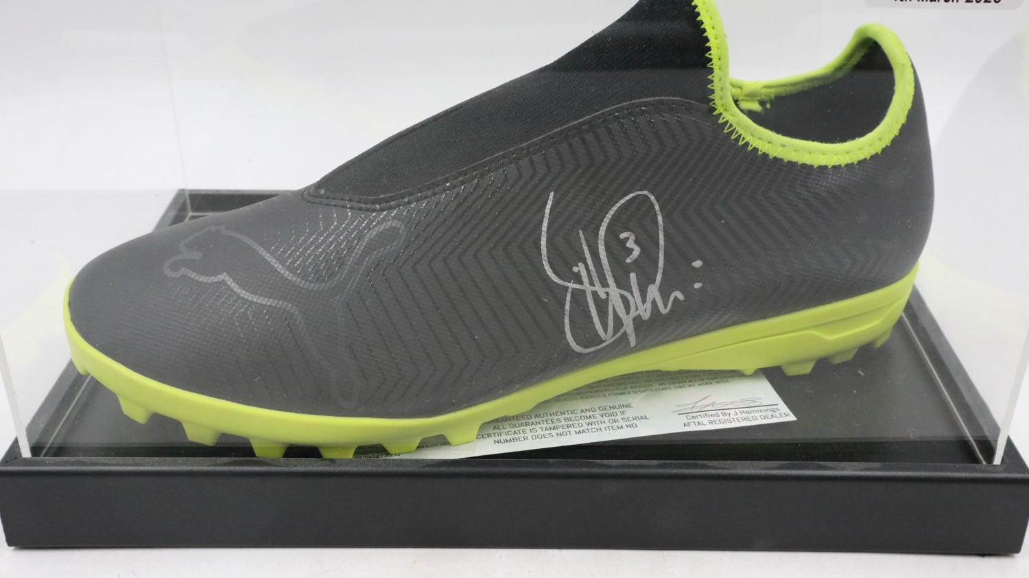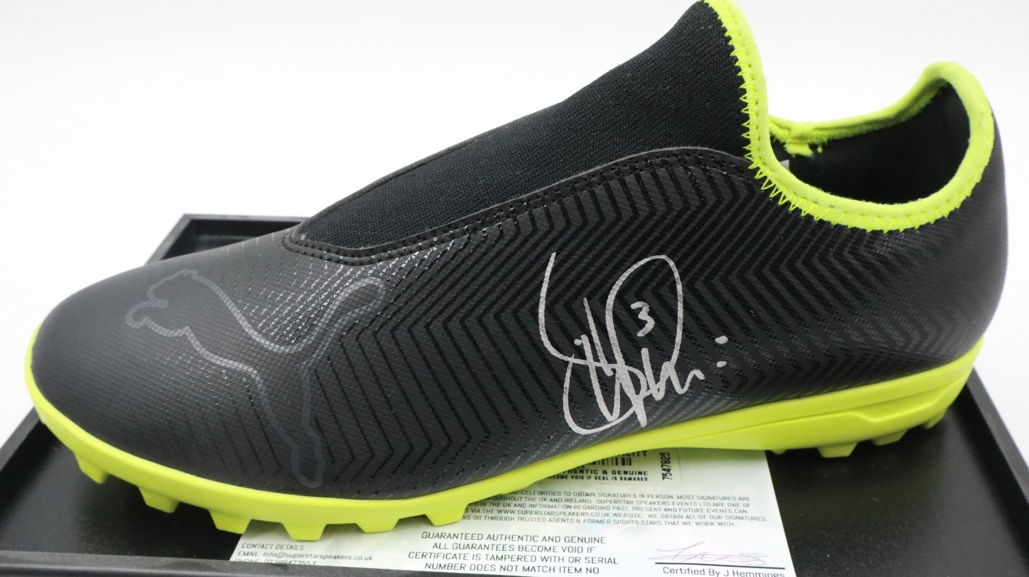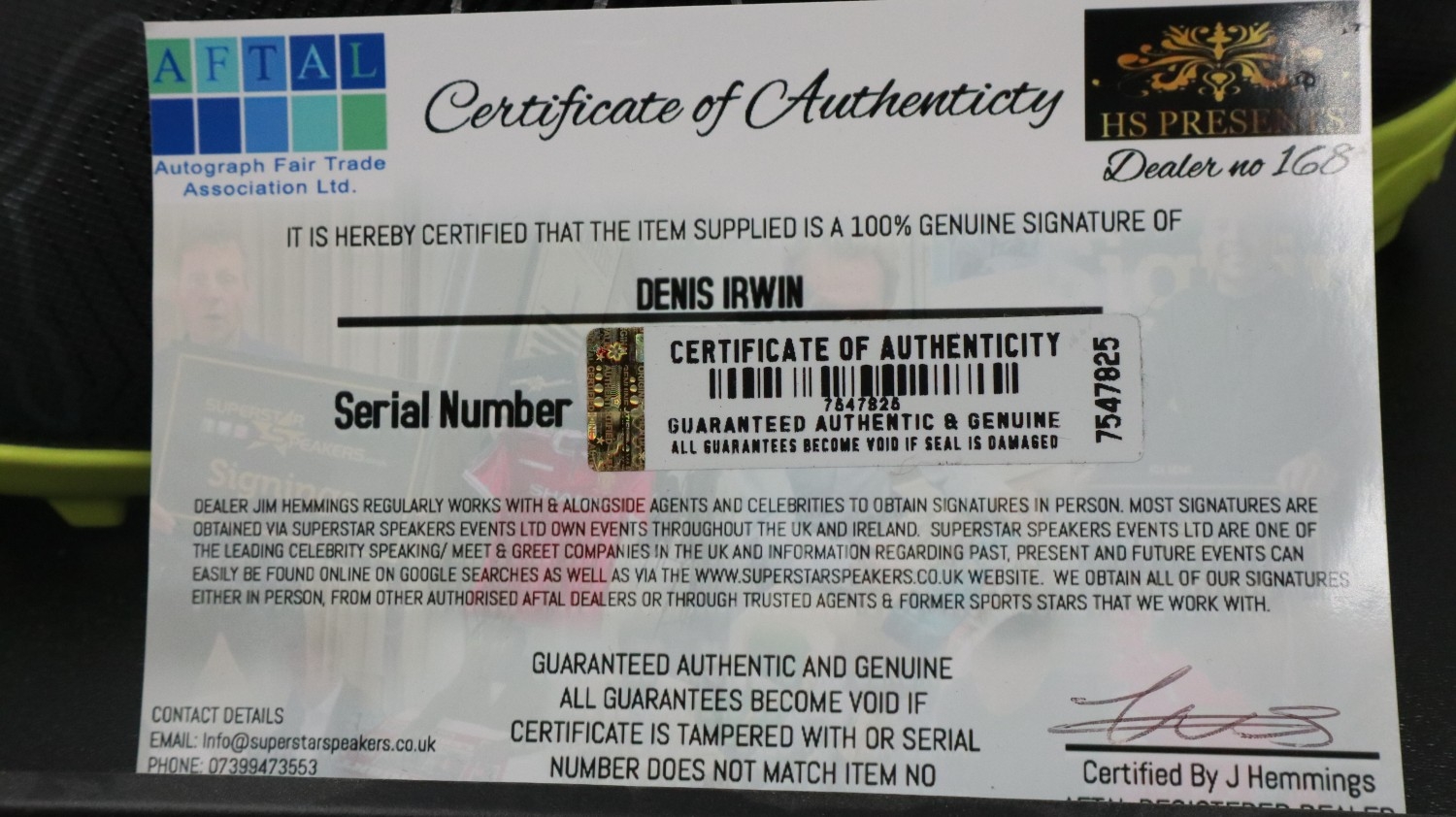 Dennis Irwin signed Puma boot with Aftal signed CoA. UK P&P Group 2 (£24+VAT for the first lot and £5+VAT for subsequent lots)