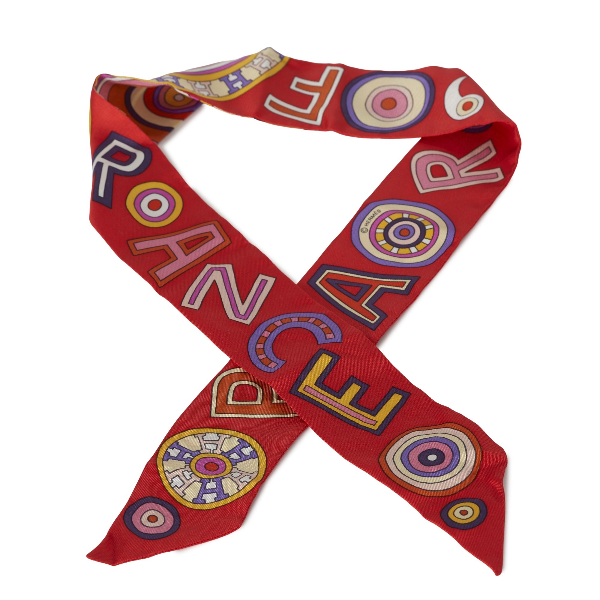 Hermes, a 24 Faubourg Twilly scarf, featuring a colourful graphic print, measuring 5 by 85cm
