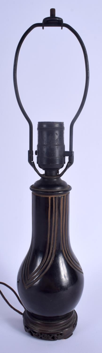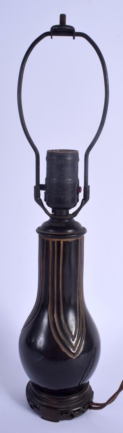 AN EARLY 20TH CENTURY JAPANESE MEIJI PERIOD TIXI LACQUER VASE converted to a lamp. Vase 16 cm high.
