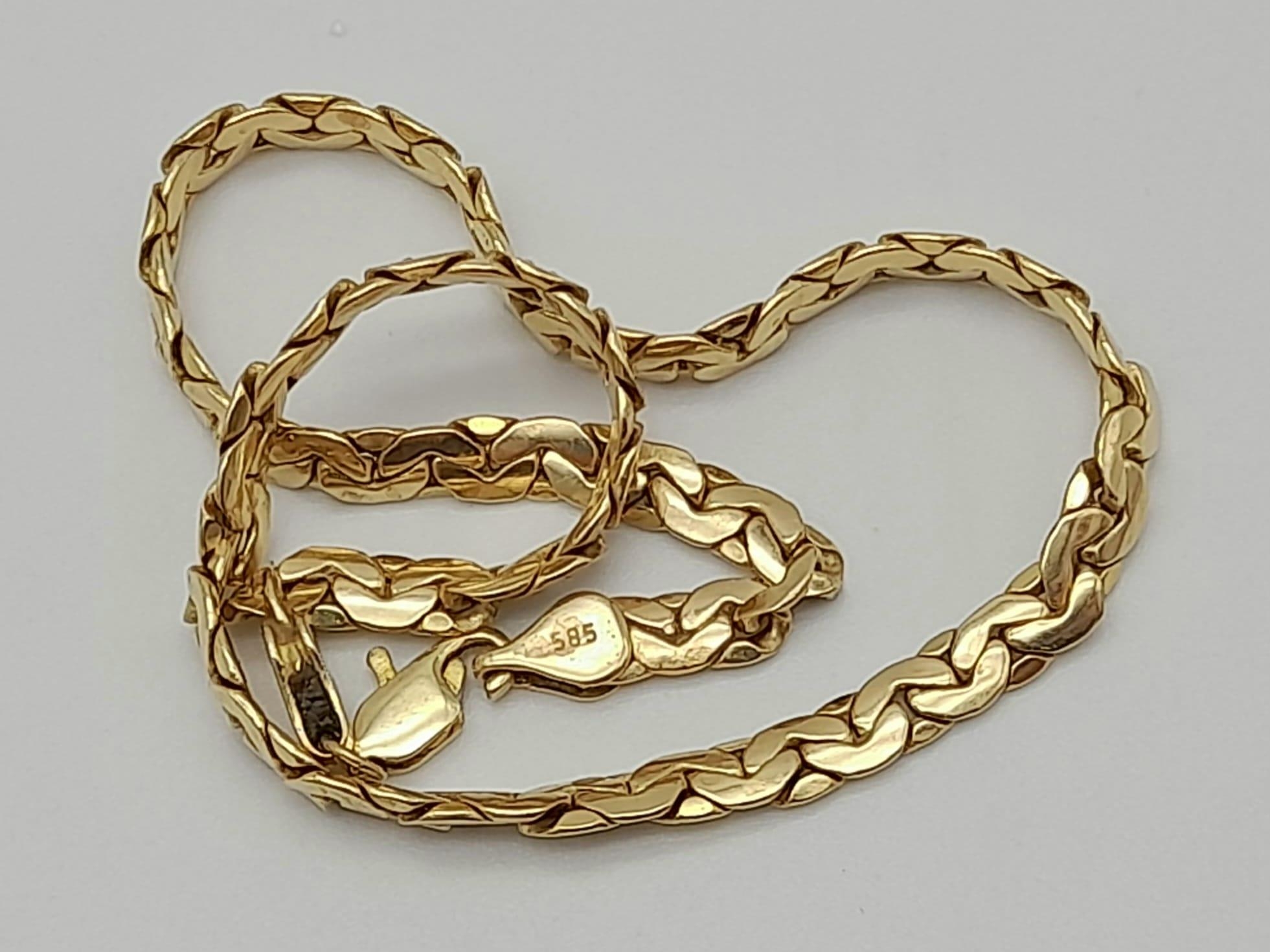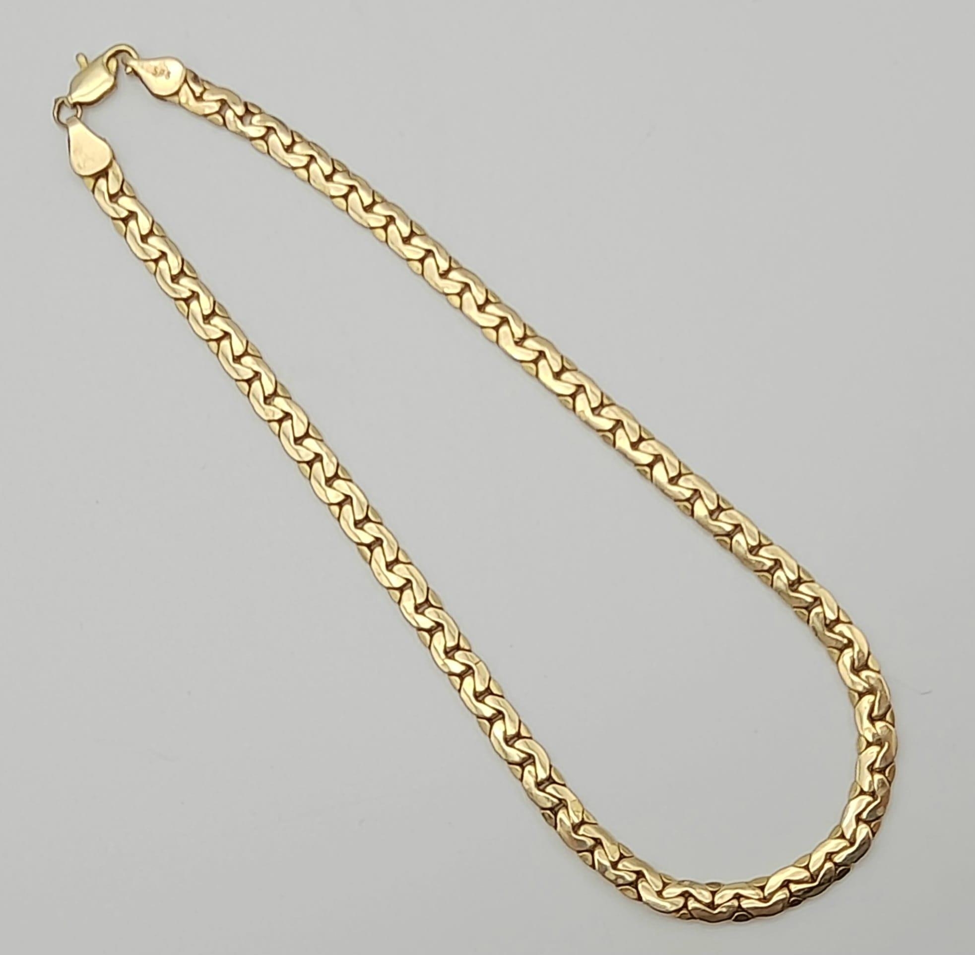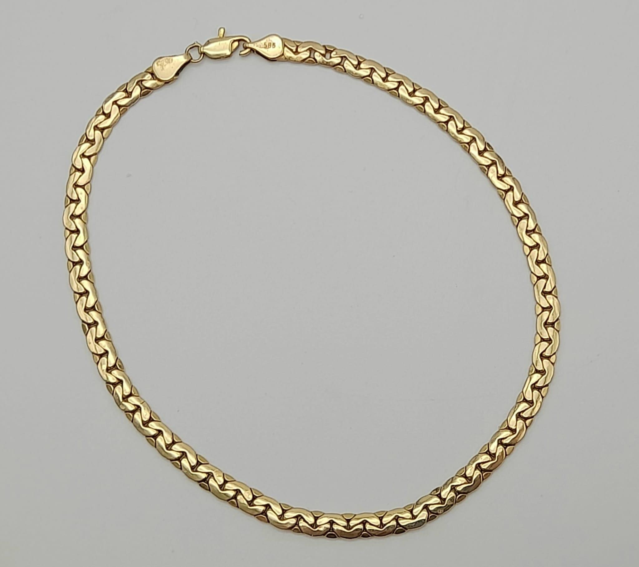 A 14K Yellow Gold Flat Tight-Curb-Link Long Bracelet. 27cm.5.93g