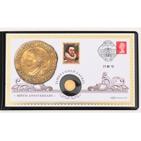 Gold coin. Gibraltar proof gold fifty pence coin cover 2019