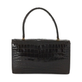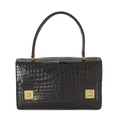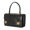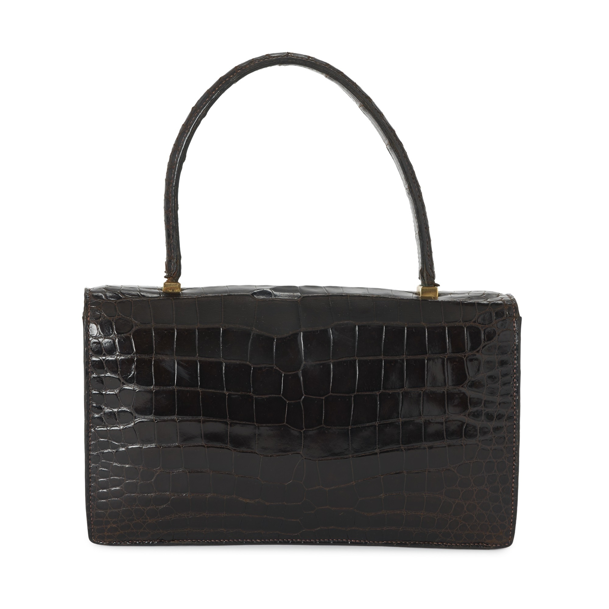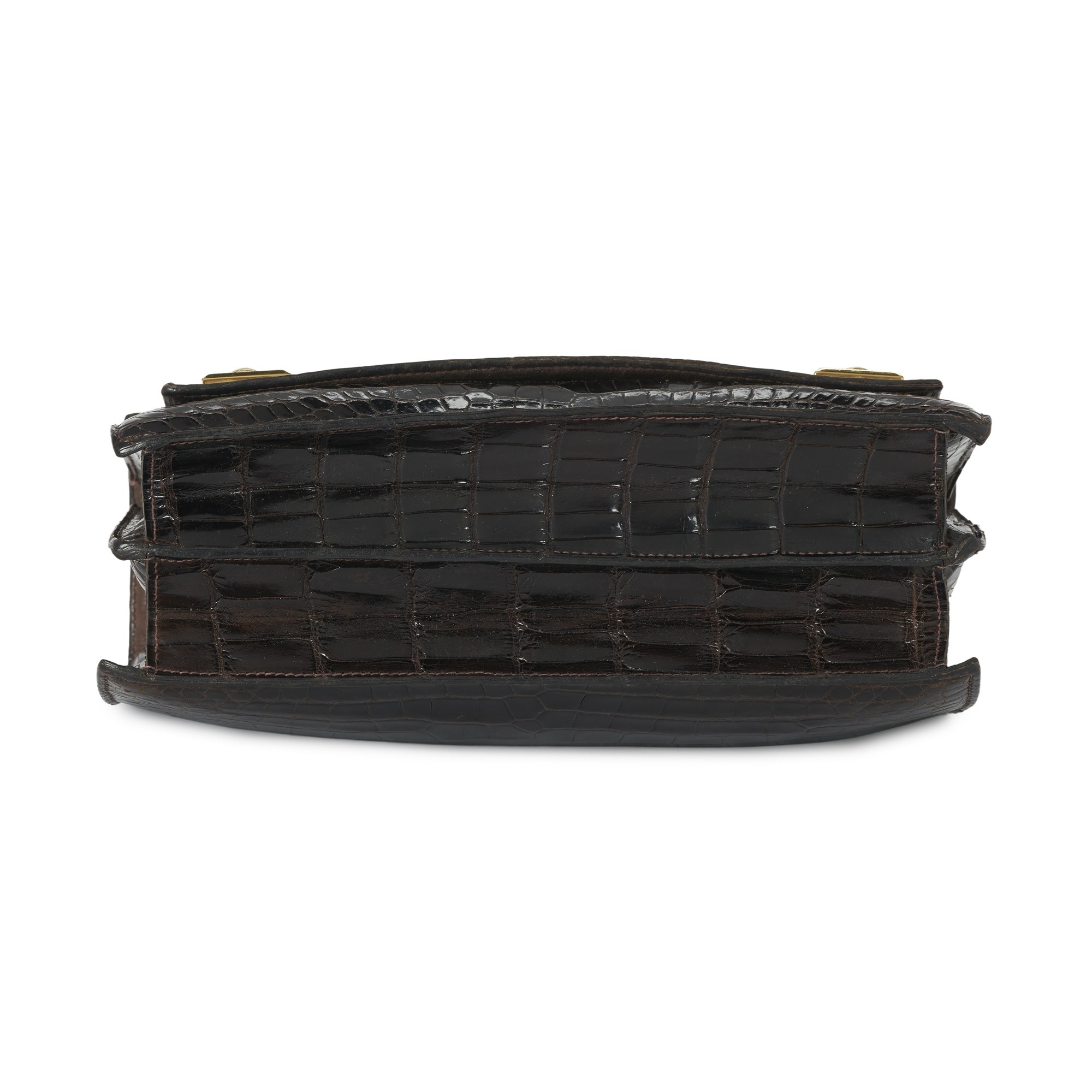 Hermes, a vintage brown crocodile Piano handbag, featuring gold-plated hardware accents, with a single looping top handle, flap closure with double square push-snap fastenings, a soft lambskin leather-lined interior with three expandable compartments, and a snap pocket, measuring 8 by 17 by 25cms, with maker's dust bag