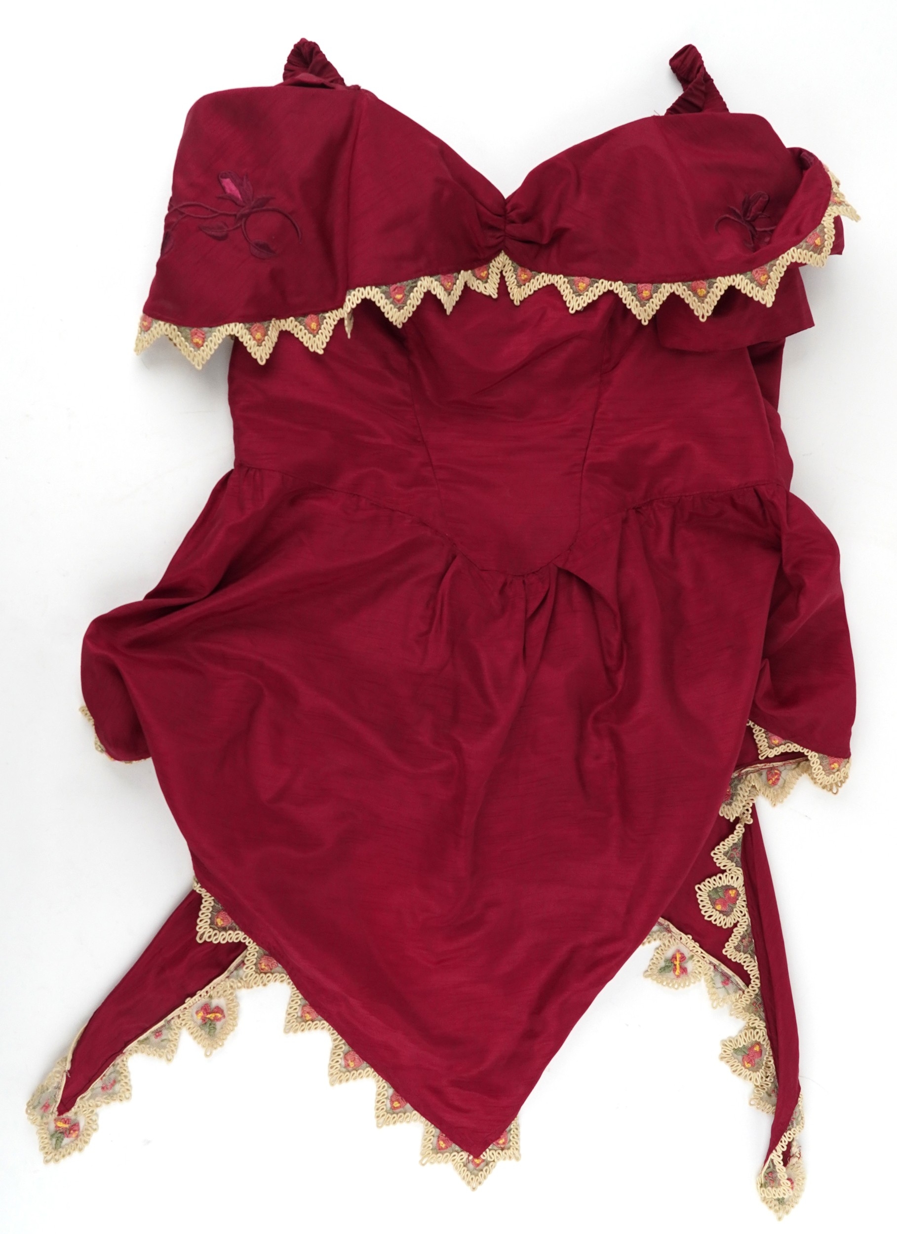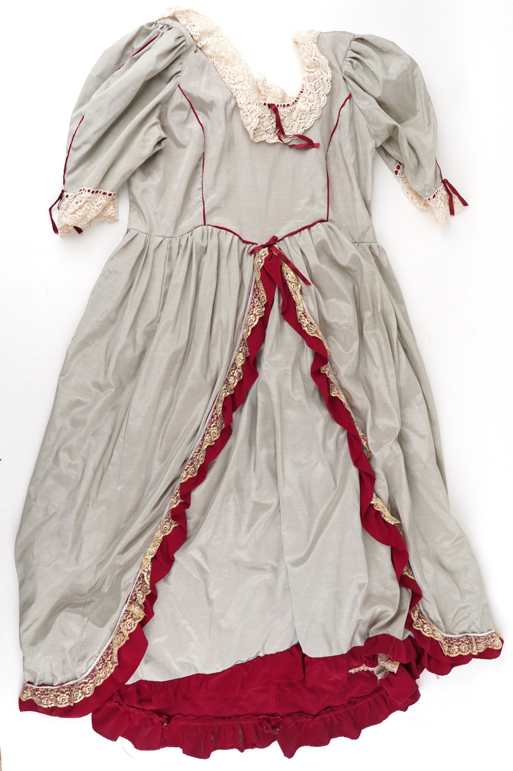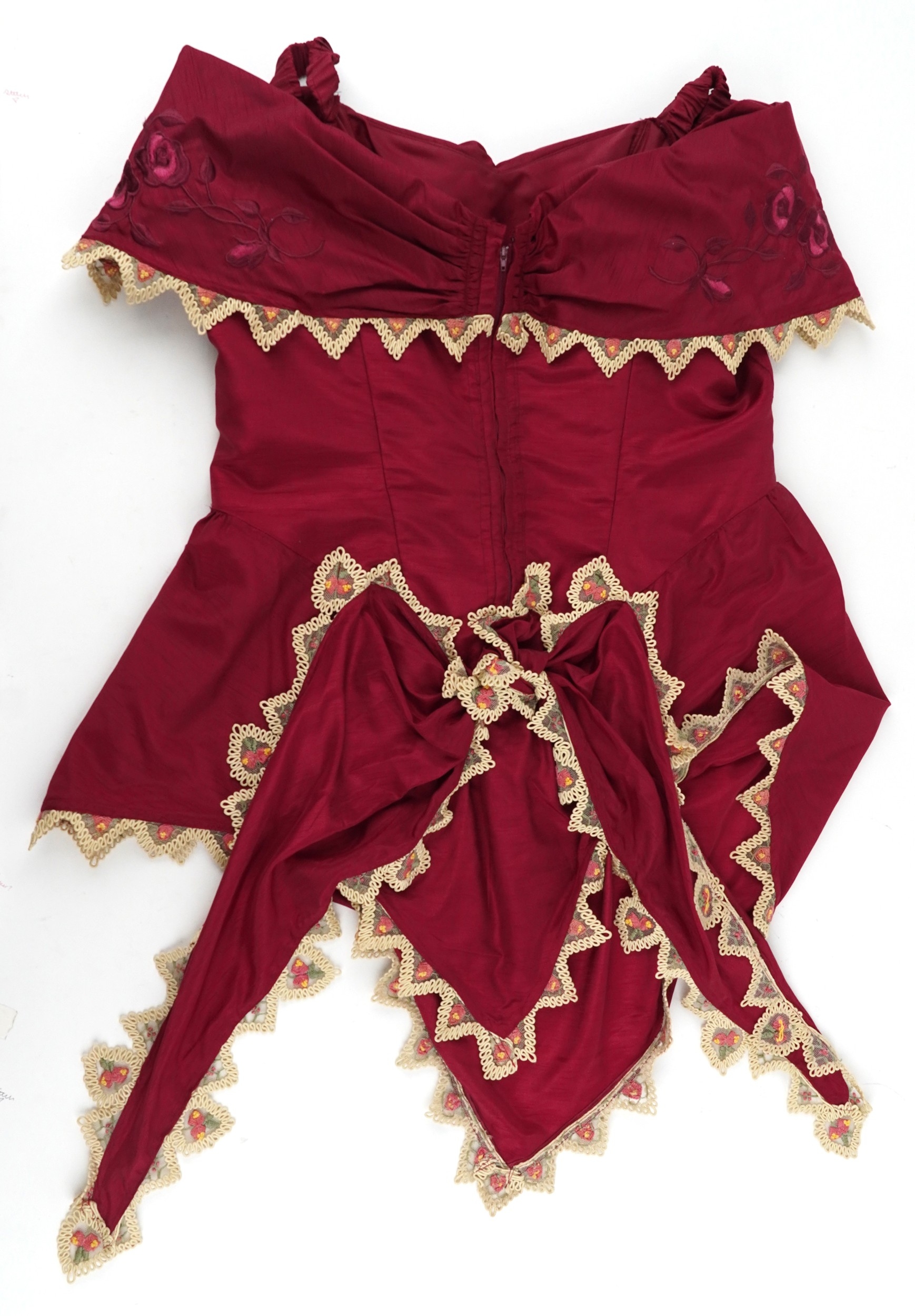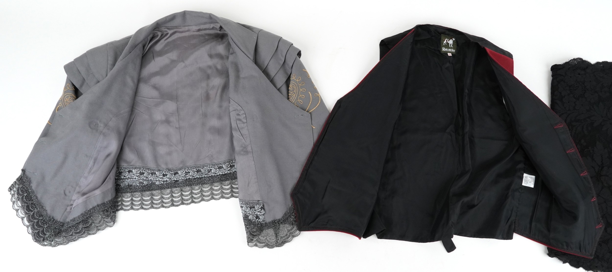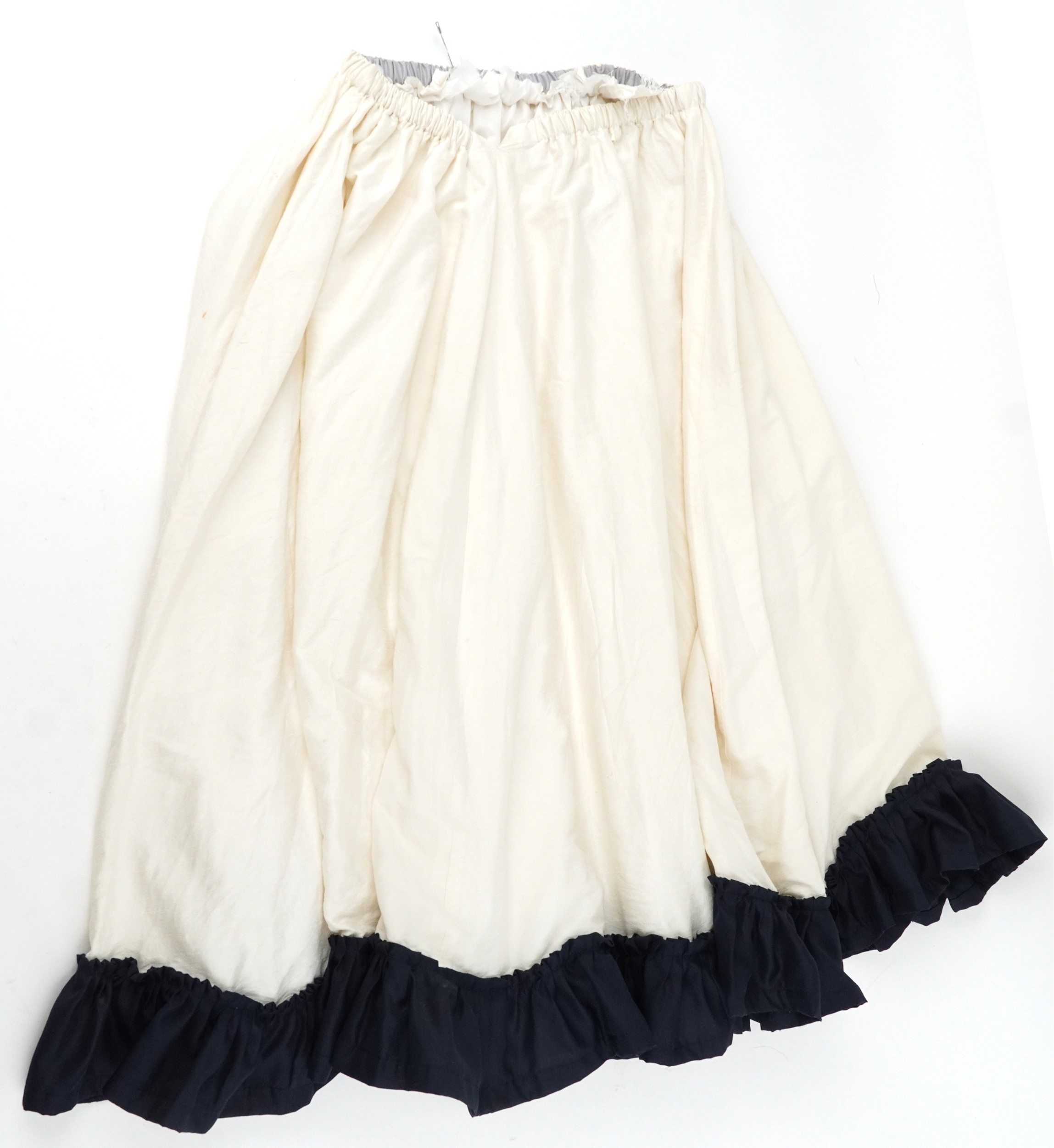 A collection of theatre costumes including a boned petticoat...