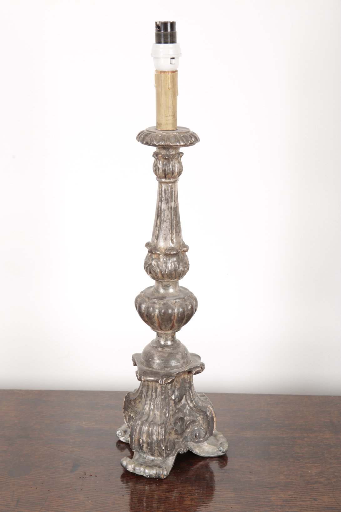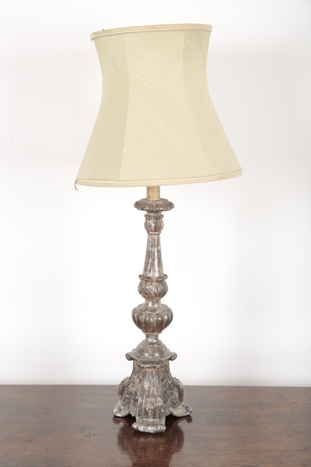 A BAROQUE STYLE SILVERED TABLE LAMP