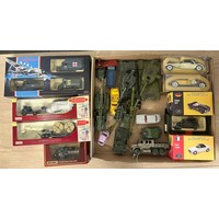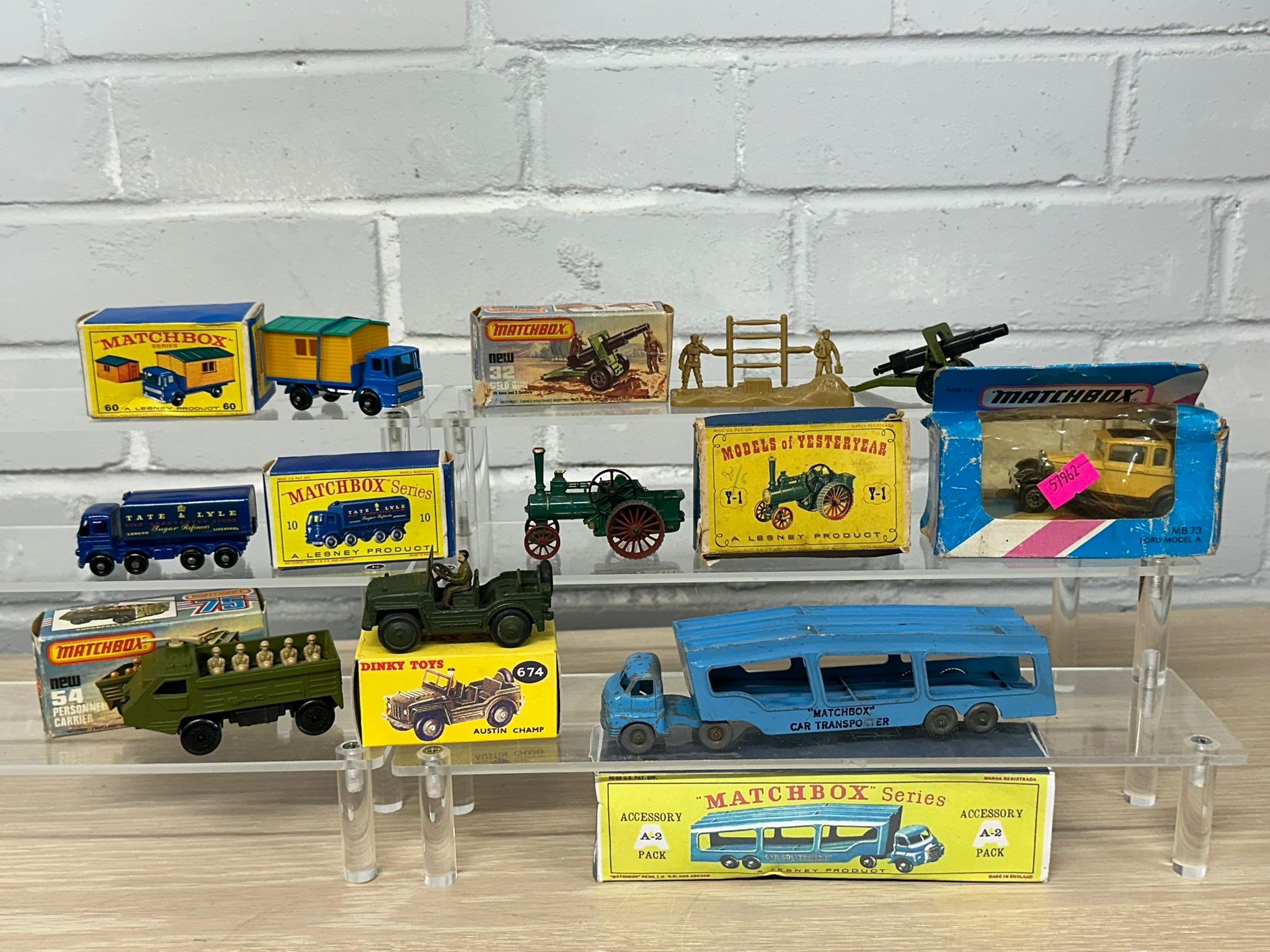 Dinky Austin champ, Matchbox car transporter, repro box, 2x matchbox 75, Lesney Sugar container, Matchbox lorry with site office and others