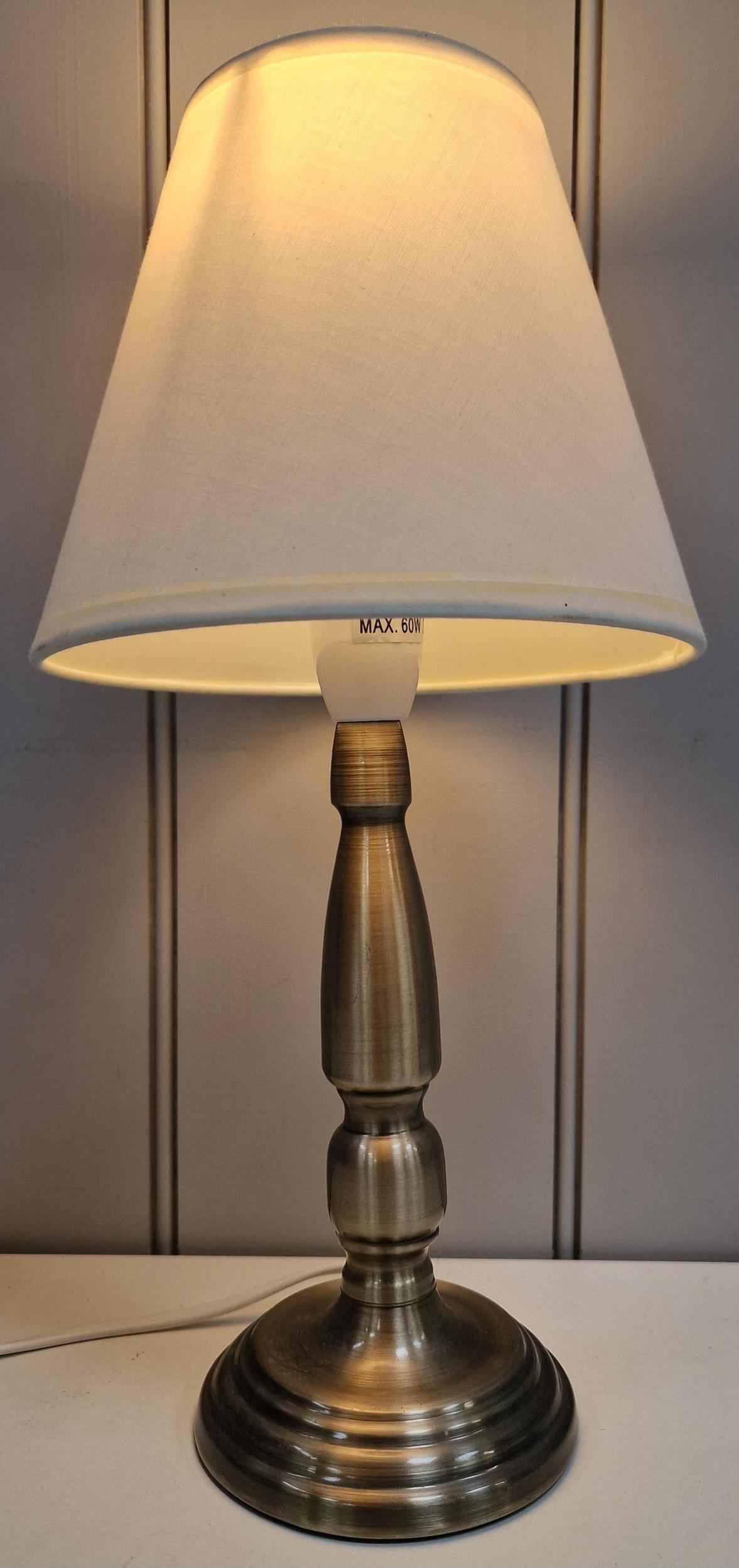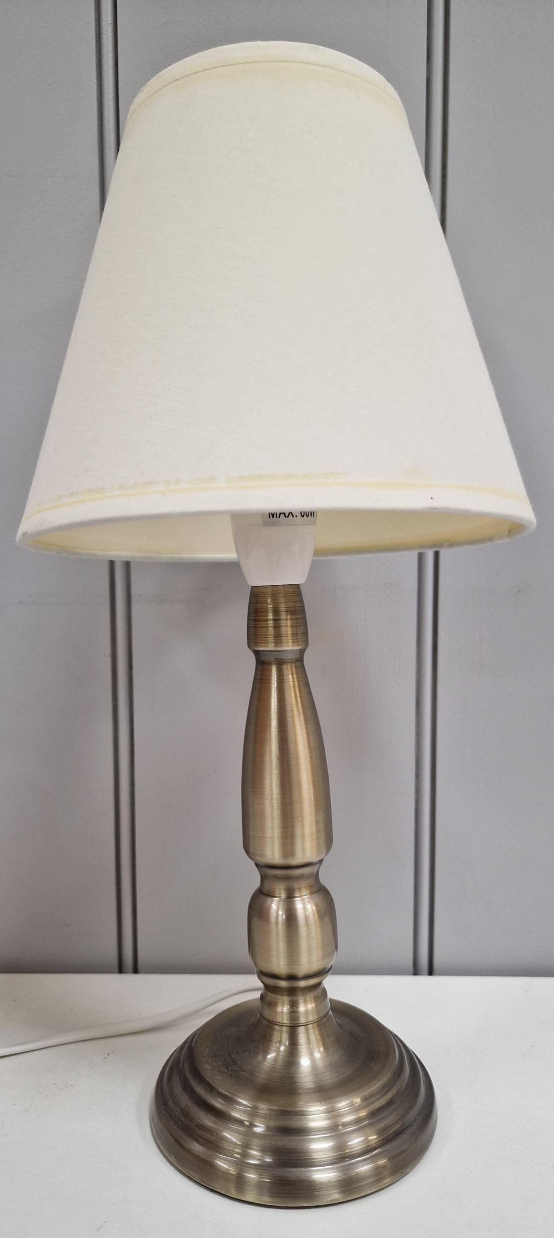 A Dunelm table lamp. Height 38cm, diameter 28cm. PAT test pass & functionality test indicates in working order.