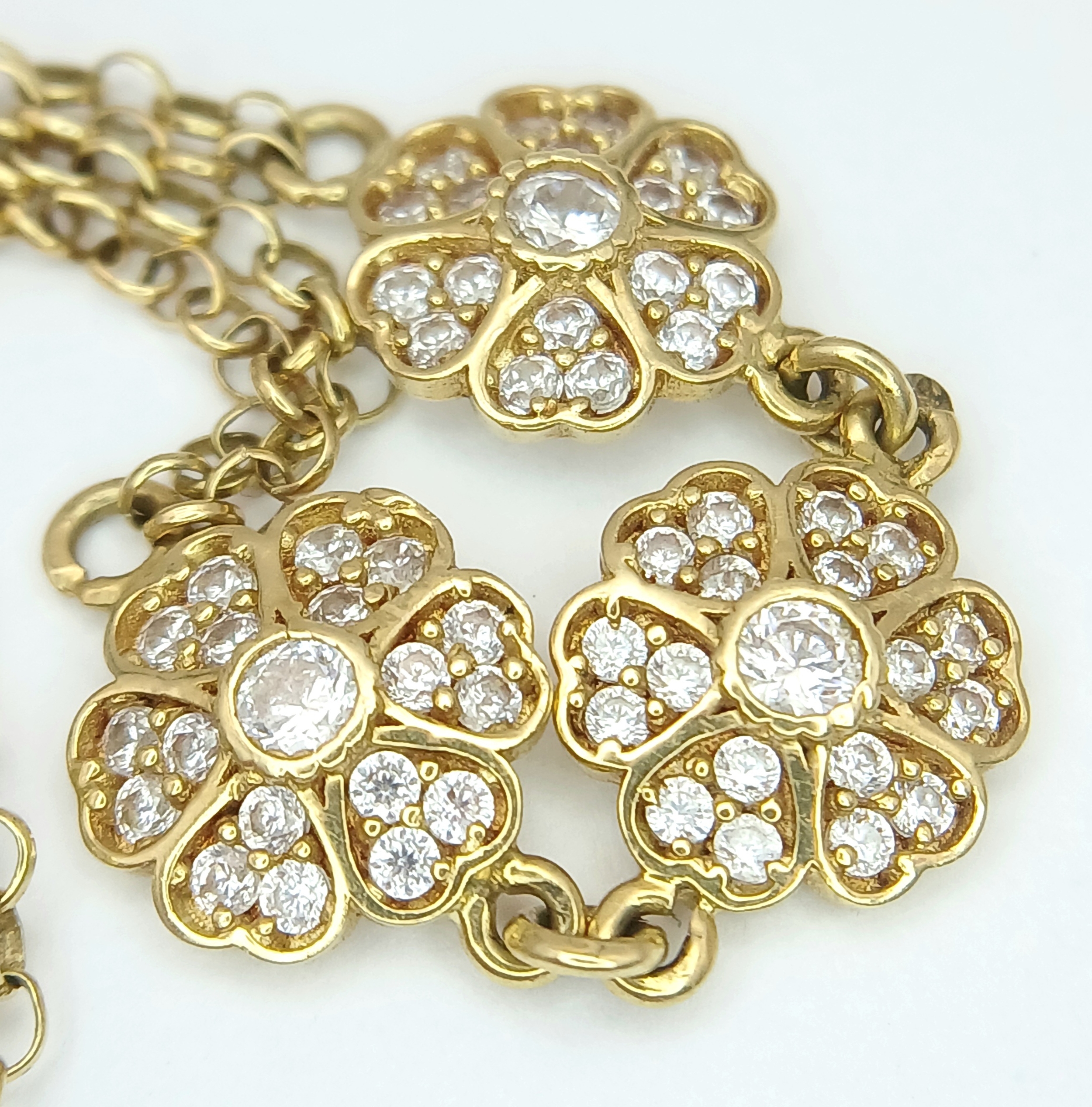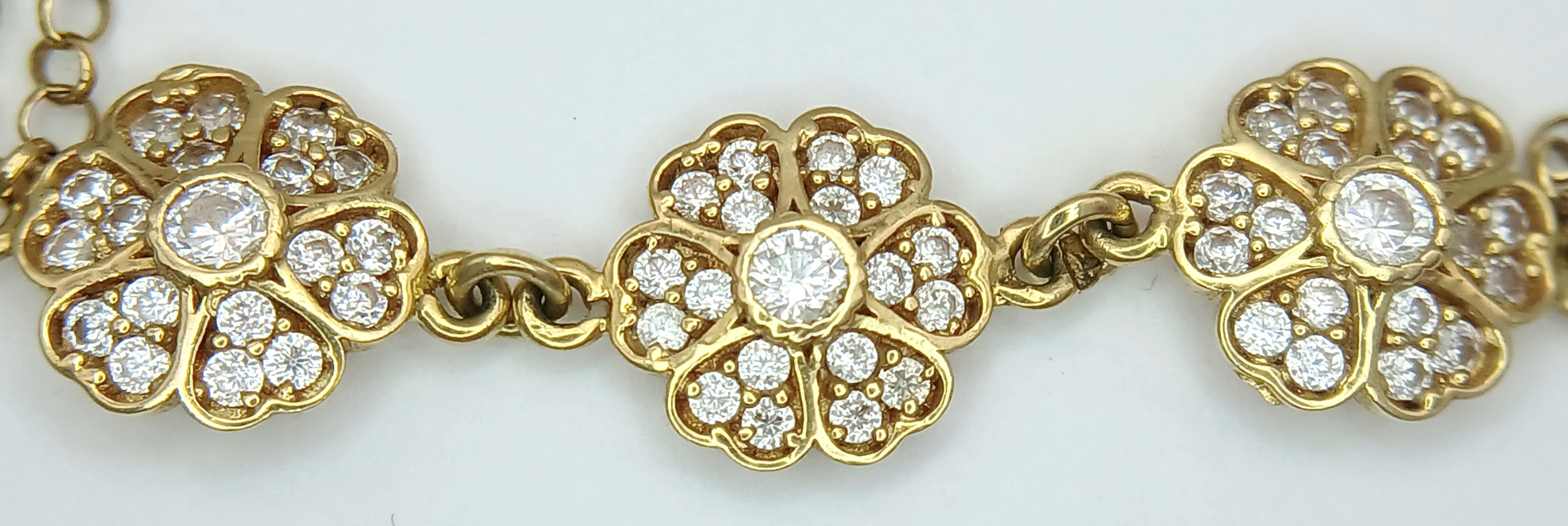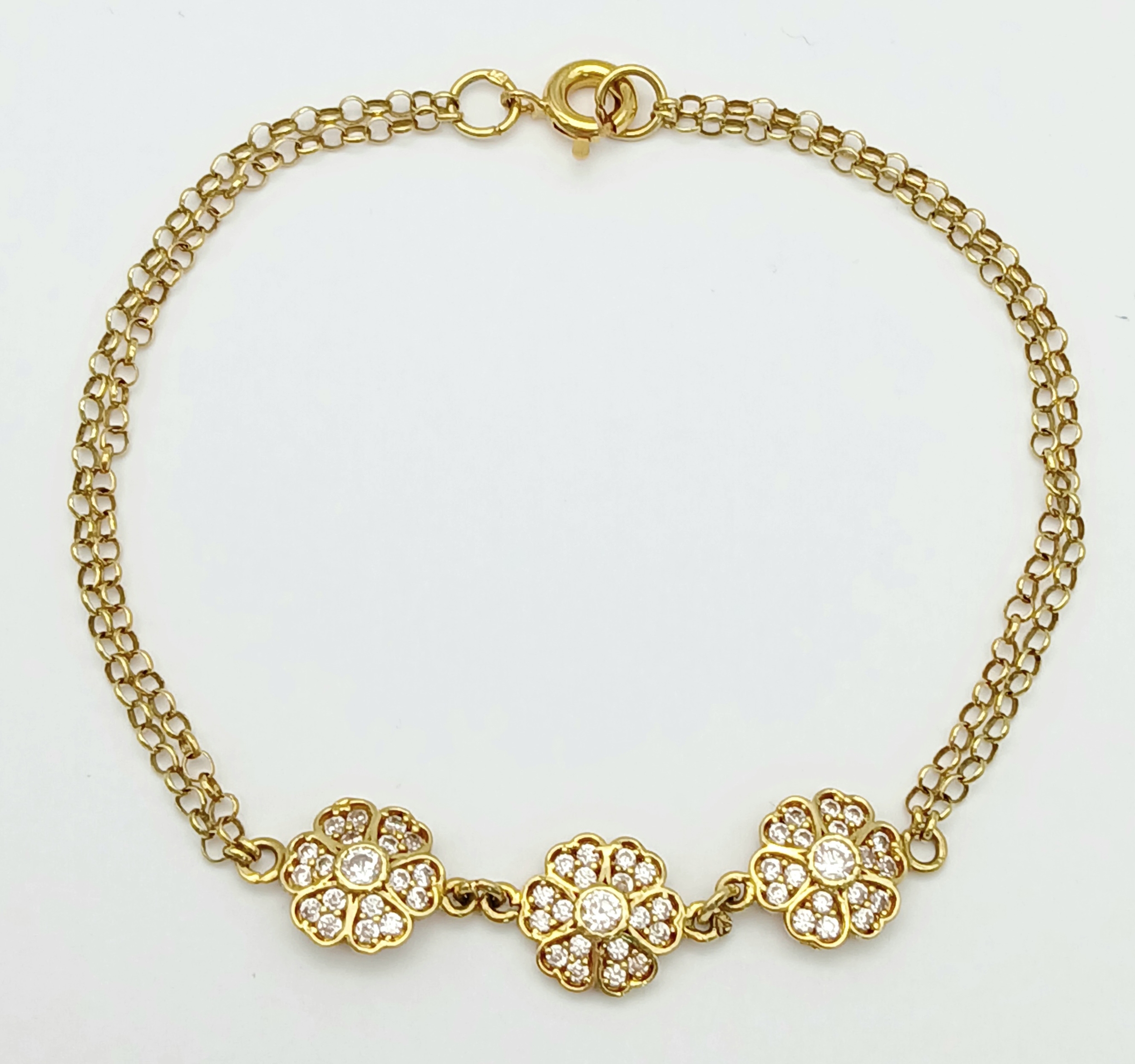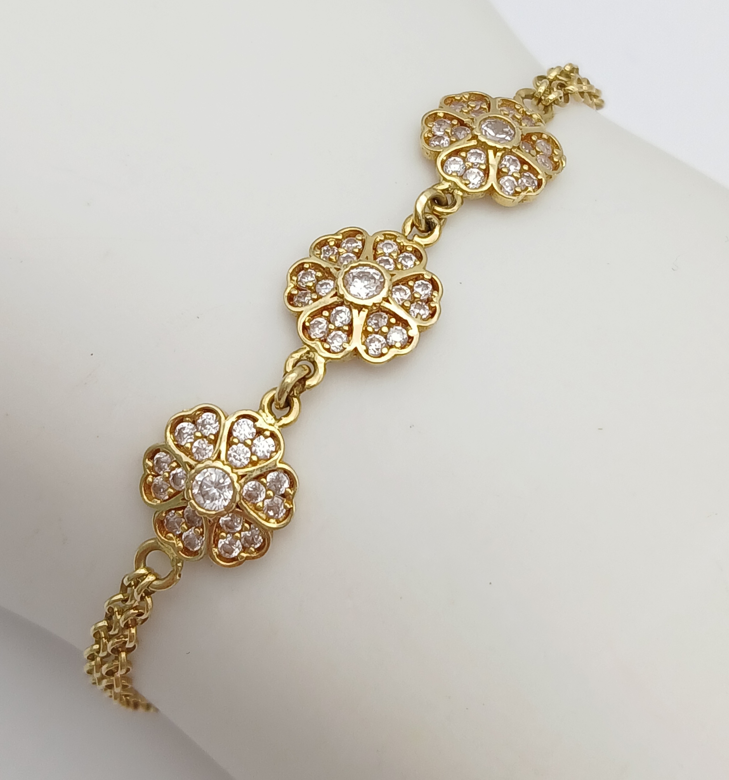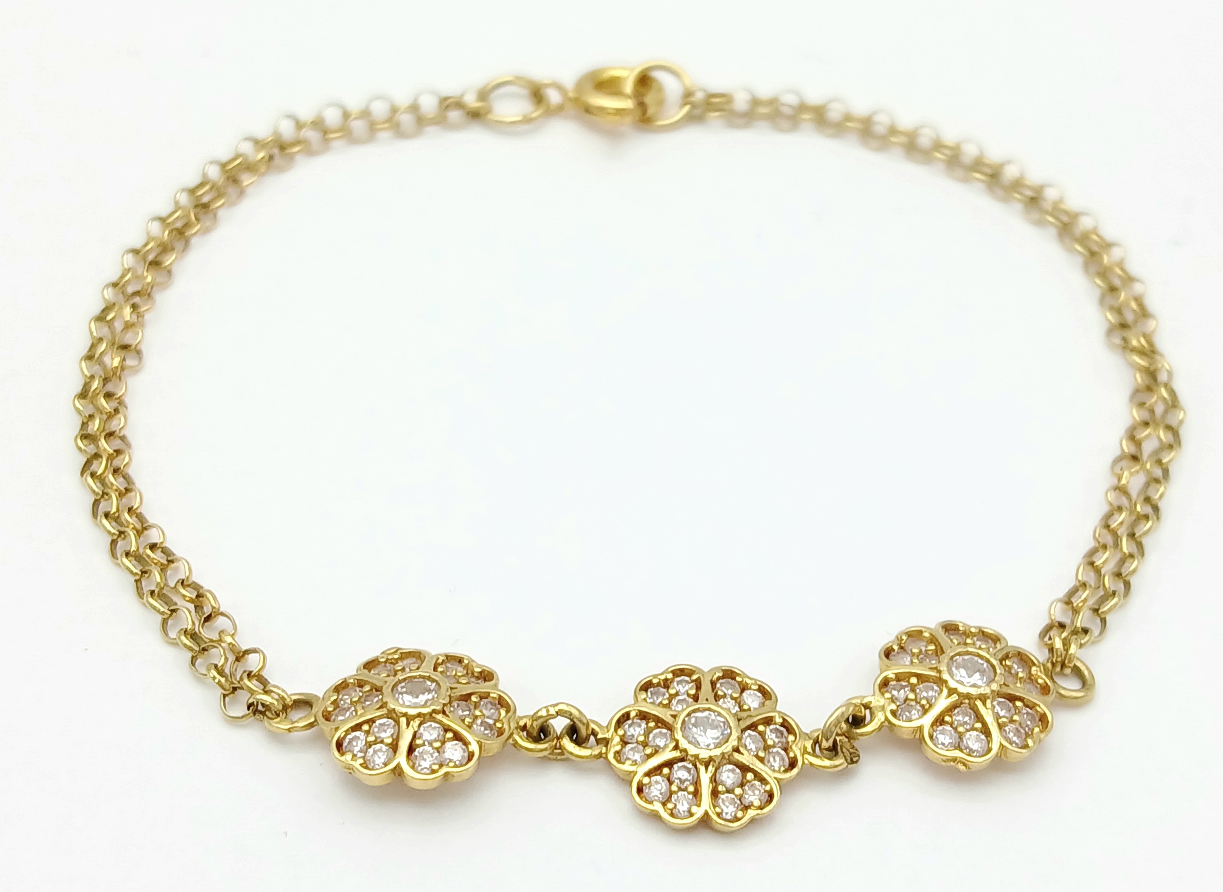 An 18K YELLOW GOLD DIAMOND SET TRIPLE FLOWER BRACELET 3.9G. ...