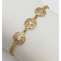 An 18K YELLOW GOLD DIAMOND SET TRIPLE FLOWER BRACELET 3.9G. Ref: TAN 7022