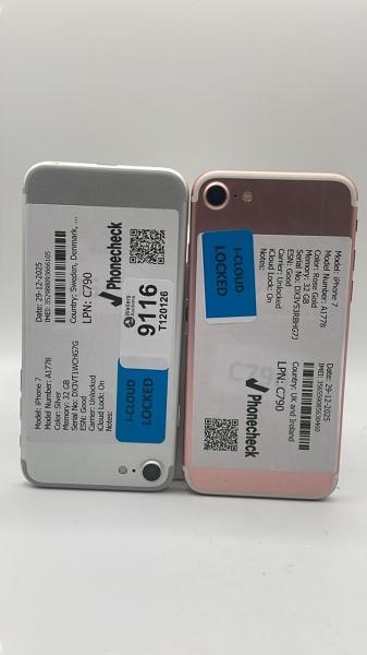 X2 APPLE IPHONES: IPHONE 7 / A1778 / 32GB / IMEI: 356559085630460 & IMEI: 352988093666105 / I-CLOUD LOCKED