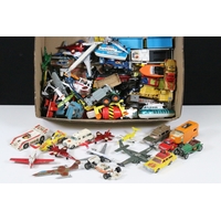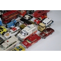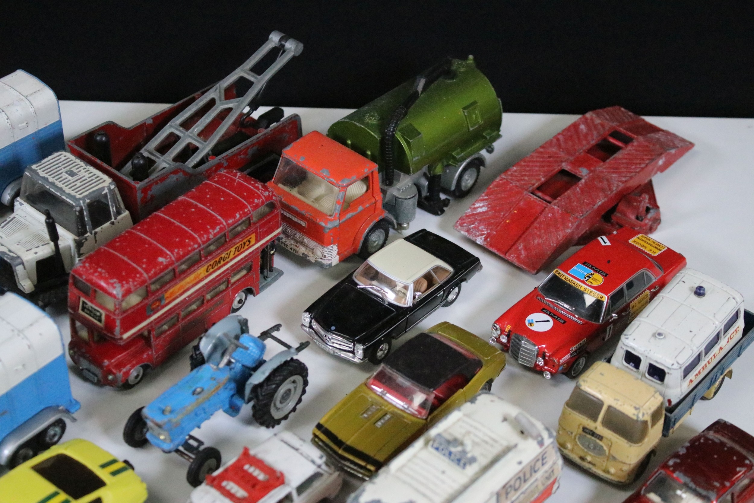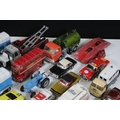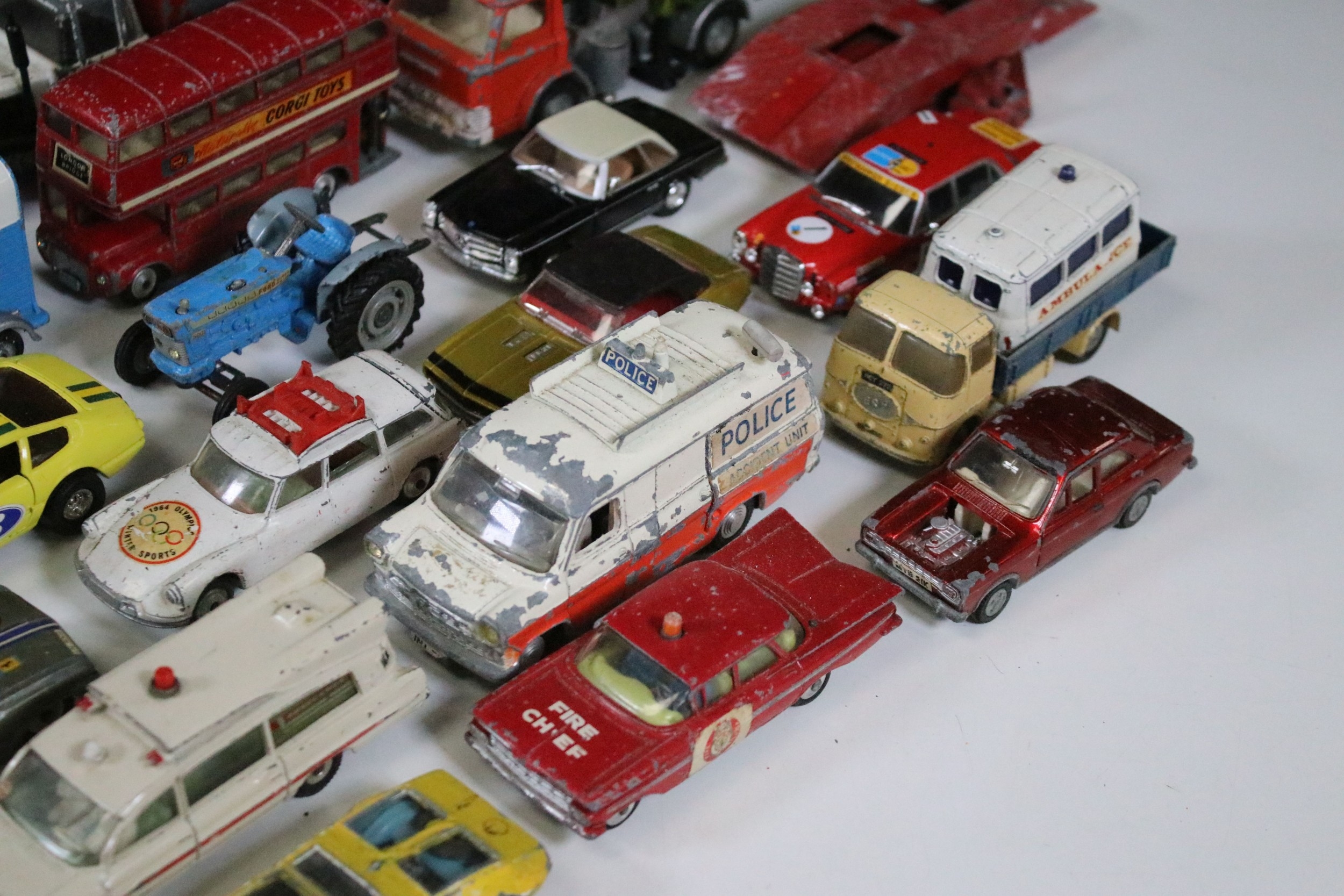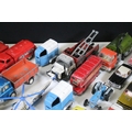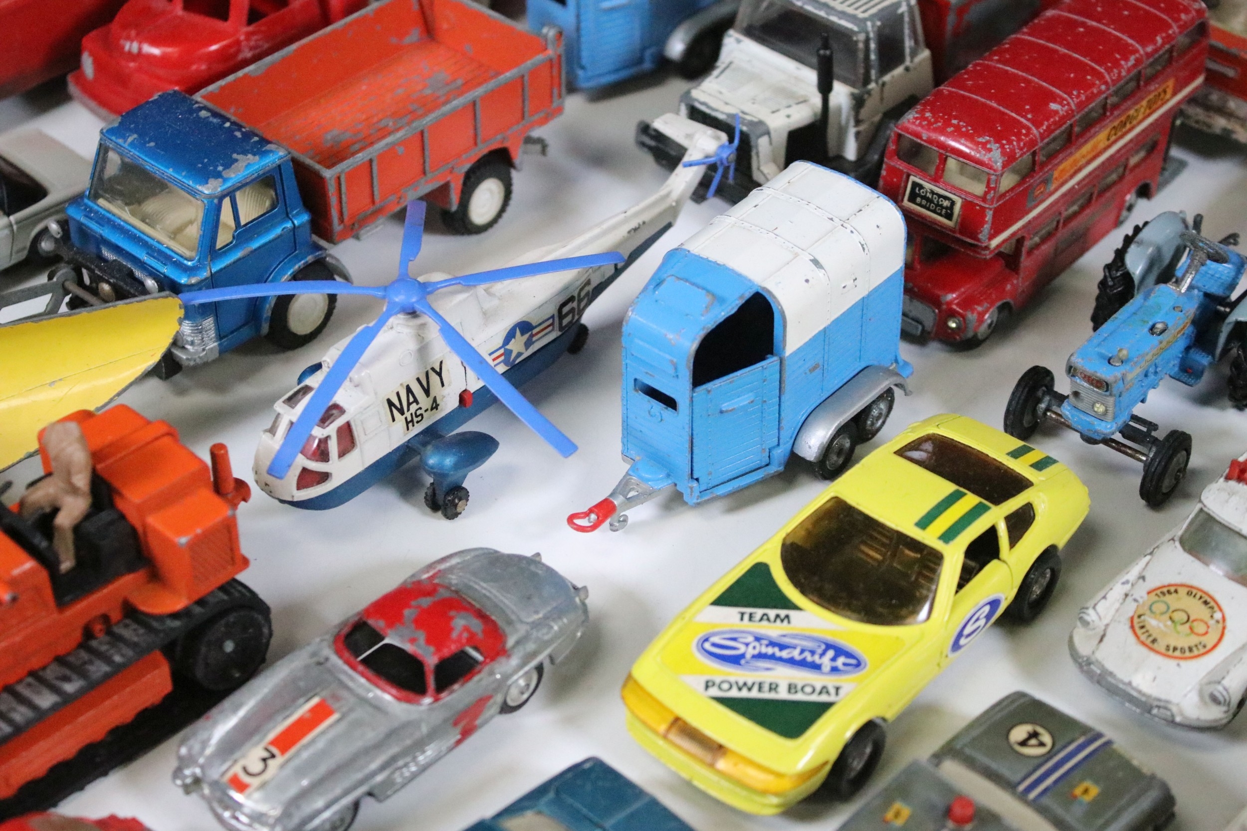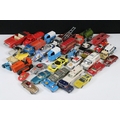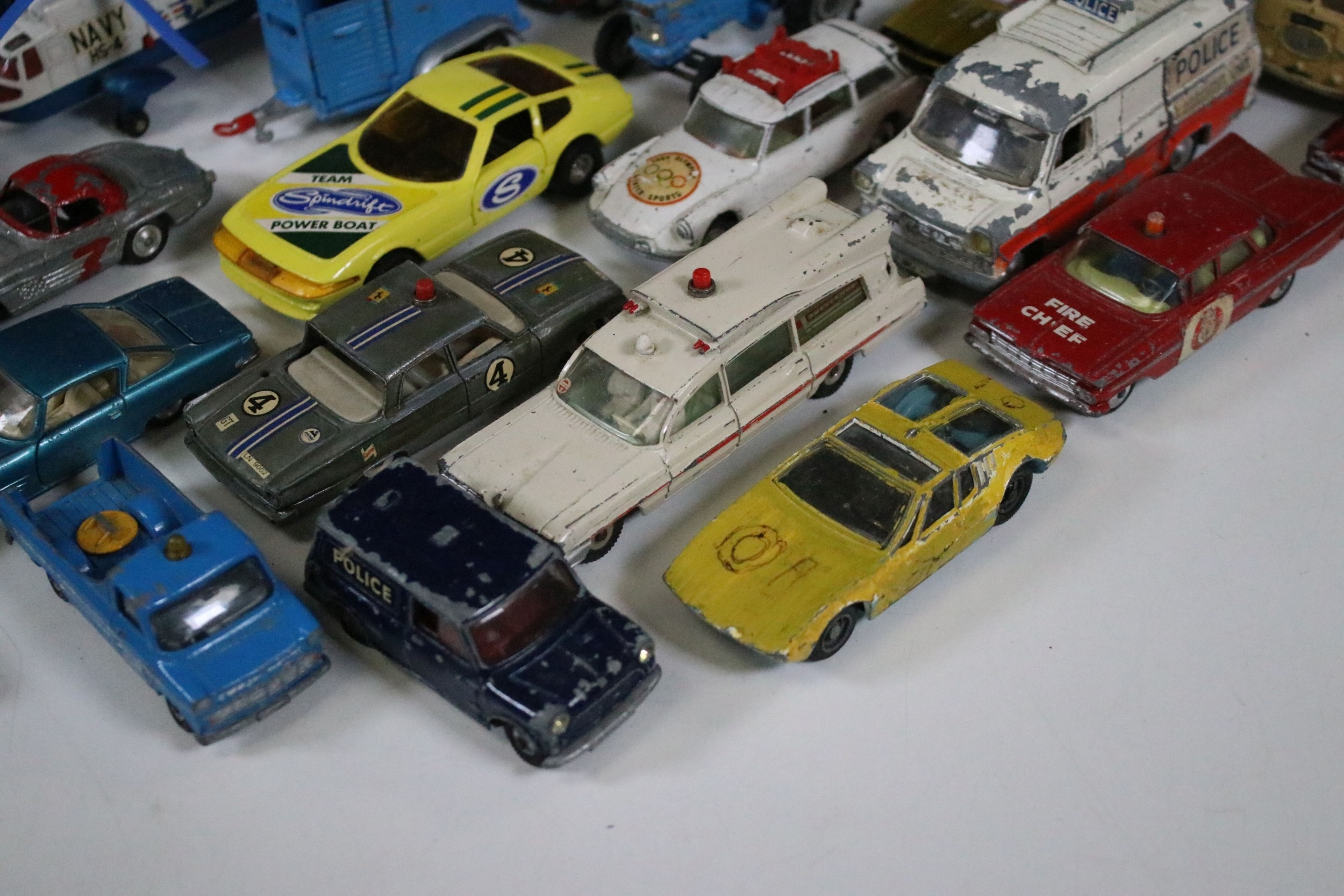 Over 30 mid 20th C play worn diecast & plastic models to include Dinky, Corgi, Lonestar etc
