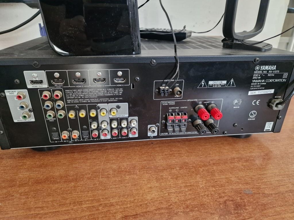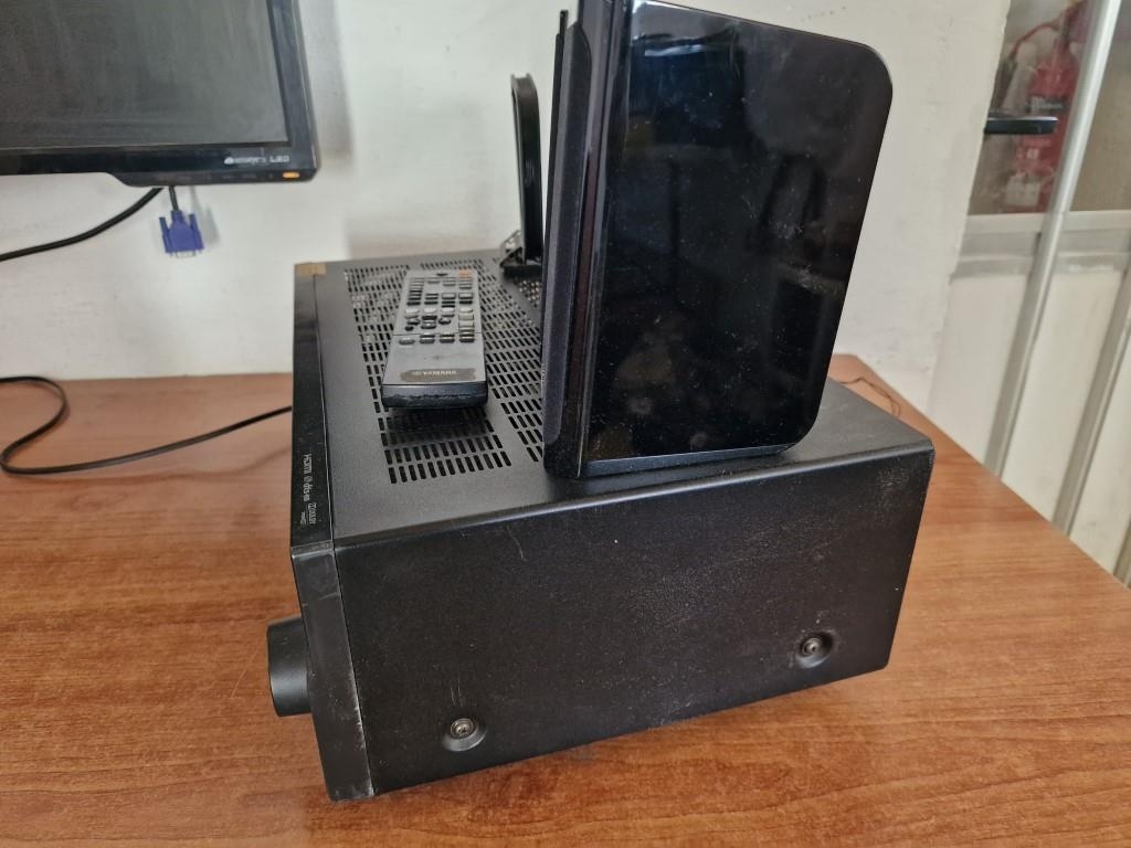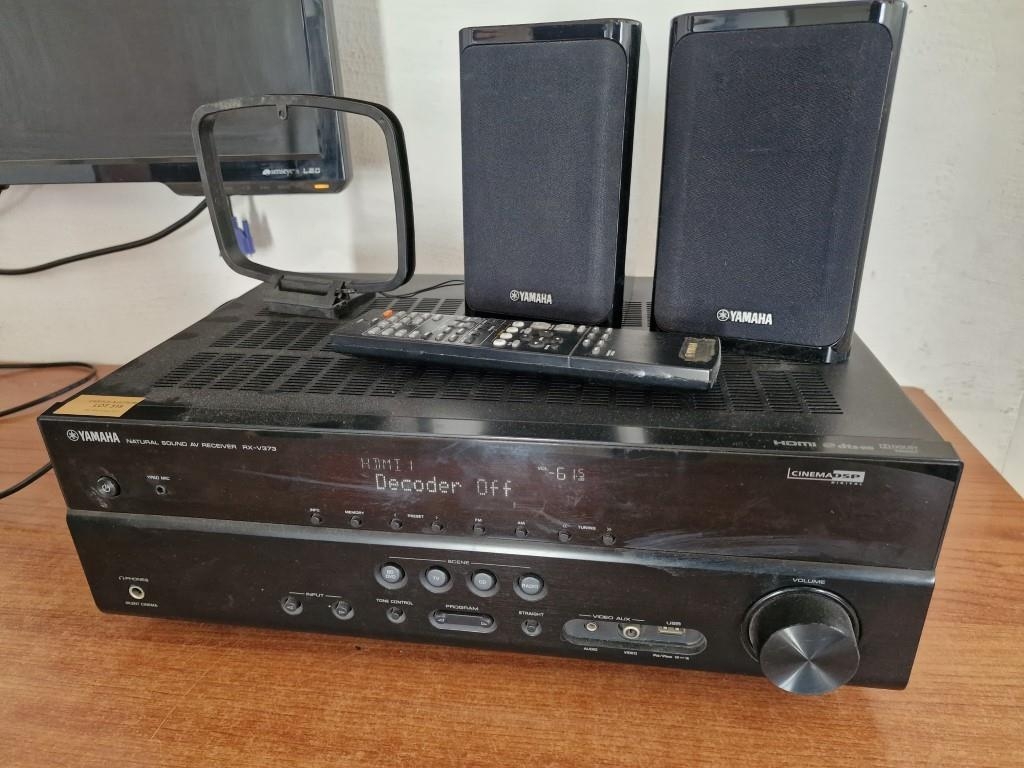 Yamaha AV Receiver (Model: RX-V373), * Basic Test and Turns On *, with Remote Control, Together with Pair of Yamaha Speakers, (Model: NS-B40)