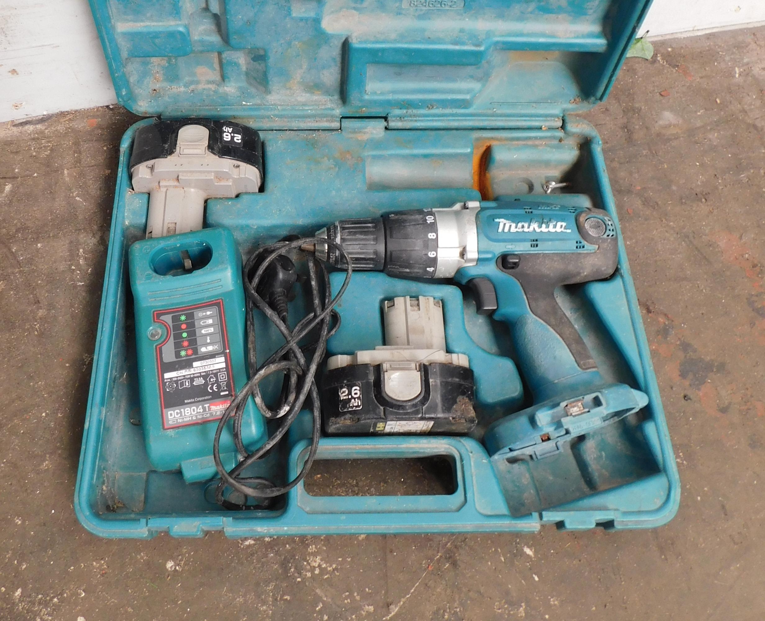 Makita drill, charger, two batteries and case - unchecked