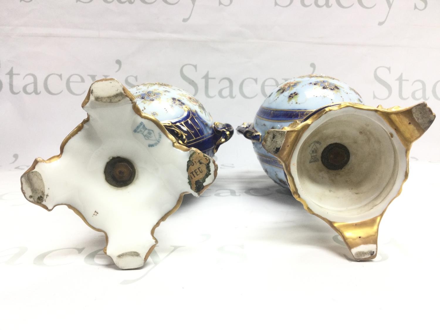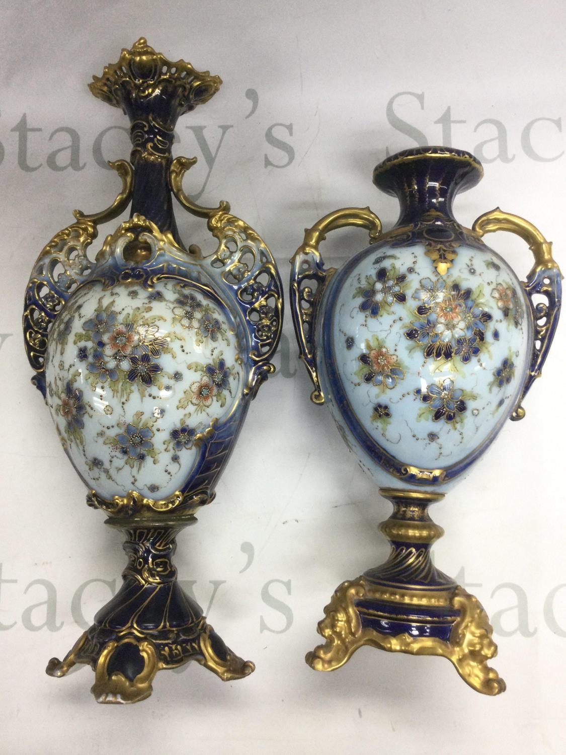 Two Rudolstadt vases decorated with blues and gilt with floral sprays, tallest approx 42cm. Shipping category D.NO RESERVE