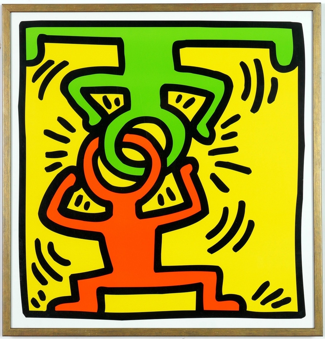 AFTER KEITH HARING. ABSTRACT. Quadrichrome, 60cm x 58cm.