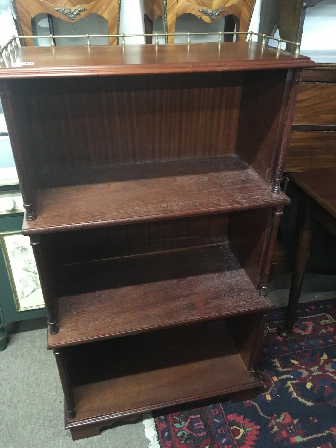 A Mahogany open bookcase with three quarter brass gallery pillar supports and stepped front.- NO RESERVE